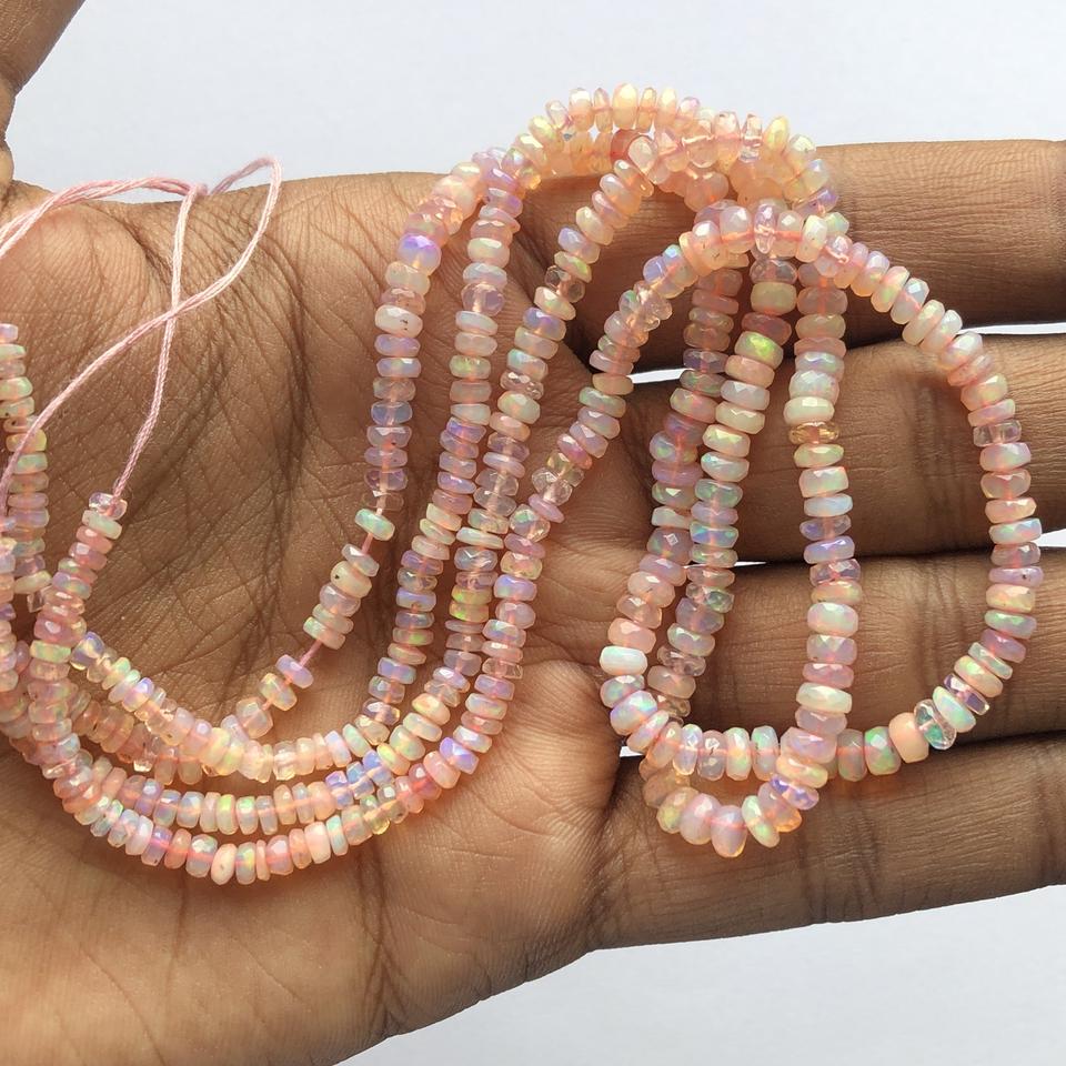 Product Name:Natural Pink Ethiopian Opal Stone Faceted Rondelle Beads Strand