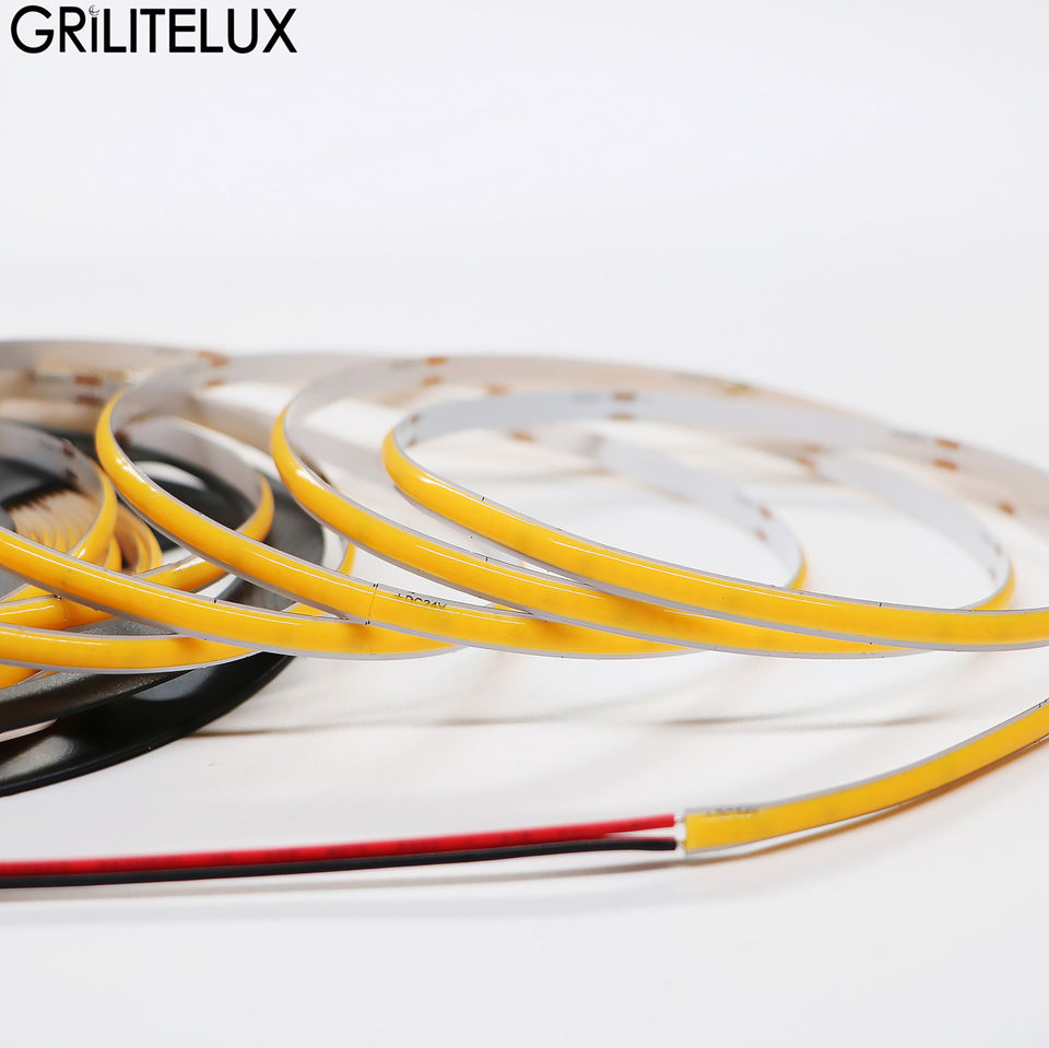 ไฟ LED แบบ COB ขนาดบางพิเศษ 3 มม. 4 มม. 5 มม. 12V 480/400 LEDs/เมตร ความหนาแน่นสูง ไฟ LED แบบเทปยืดหยุ่น FOB ไฟ LED แบบริบบิ้นยืดหยุ่น ปรับความสว่างได้