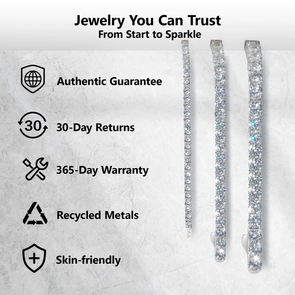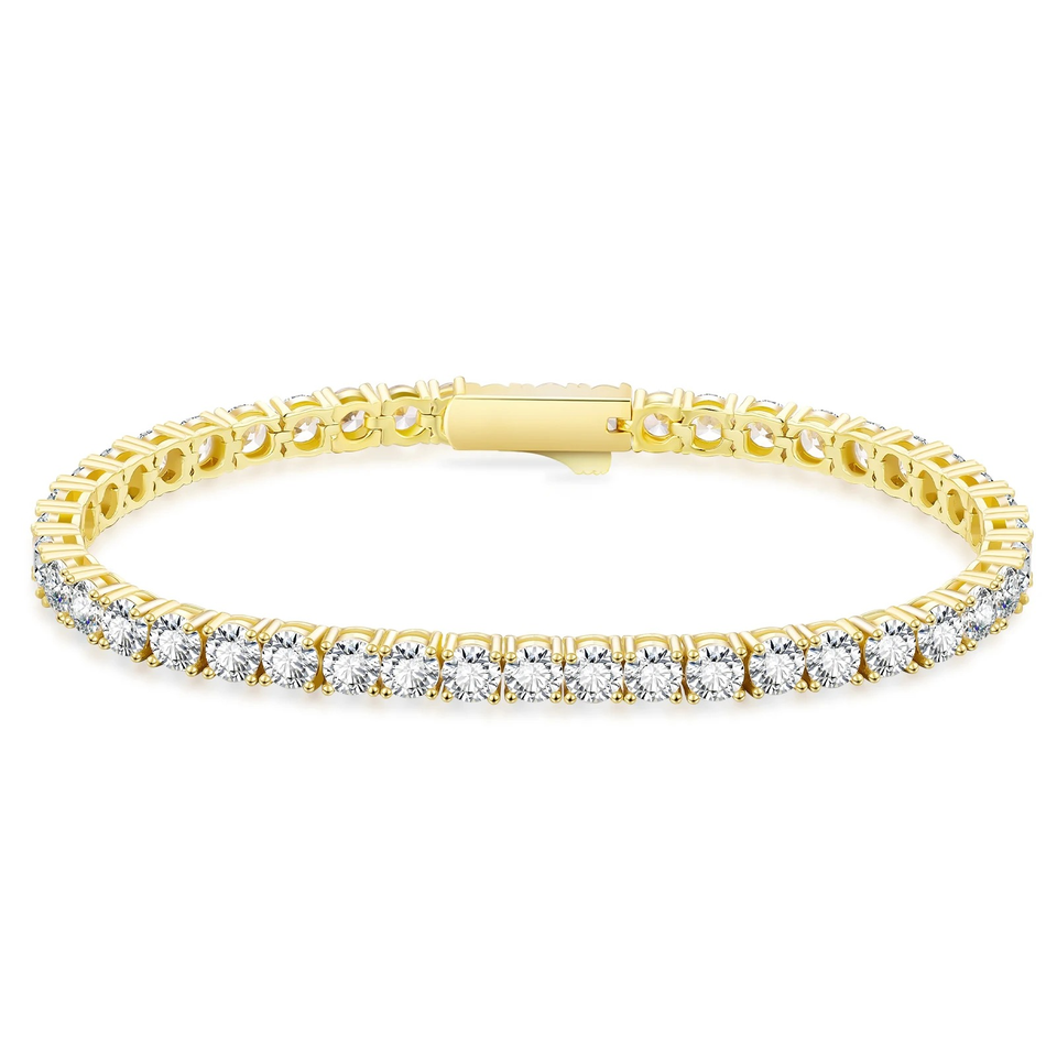 สร้อยข้อมือเทนนิสแบบคลาสสิก ขนาด 3 มม. 4 มม. ดีไซน์หรูหรา ประดับเพชรเซอร์โคเนียทรงกลม เกรด AAAAA ชุบทอง 14K สำหรับผู้หญิงและผู้ชาย