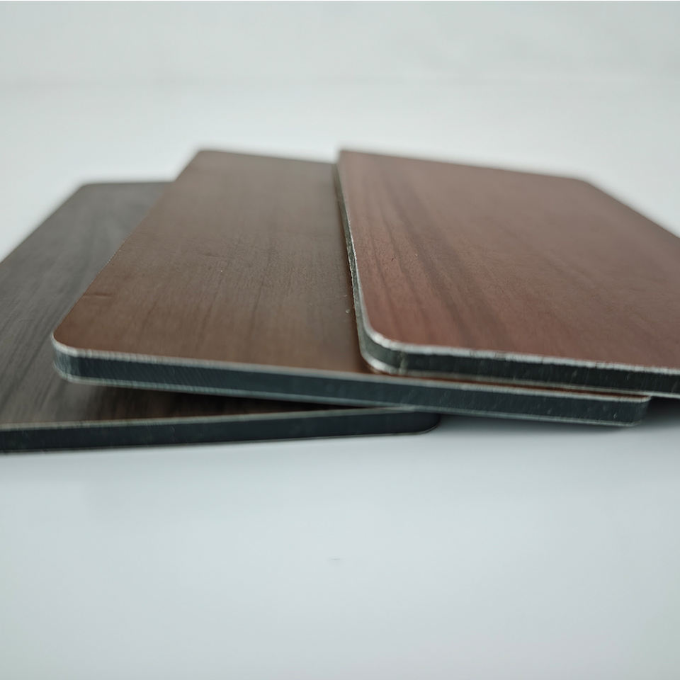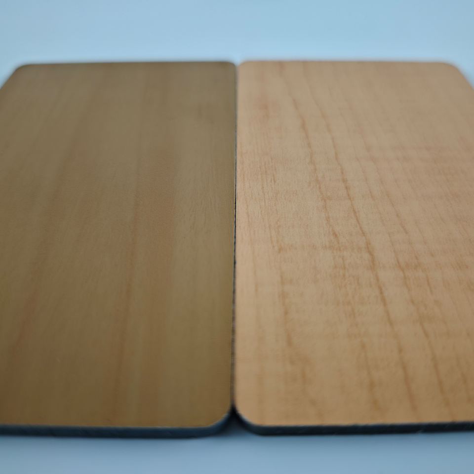 แผงผนังอะลูมิเนียมคอมโพสิตโลหะป้องกันไฟฟ้าสถิตย์ดีไซน์ทันสมัยขนาด3มม. 4มม. สำหรับโรงแรมที่มีแผ่นใยไม้อัดเคลือบสีไม้แตกต่างกัน