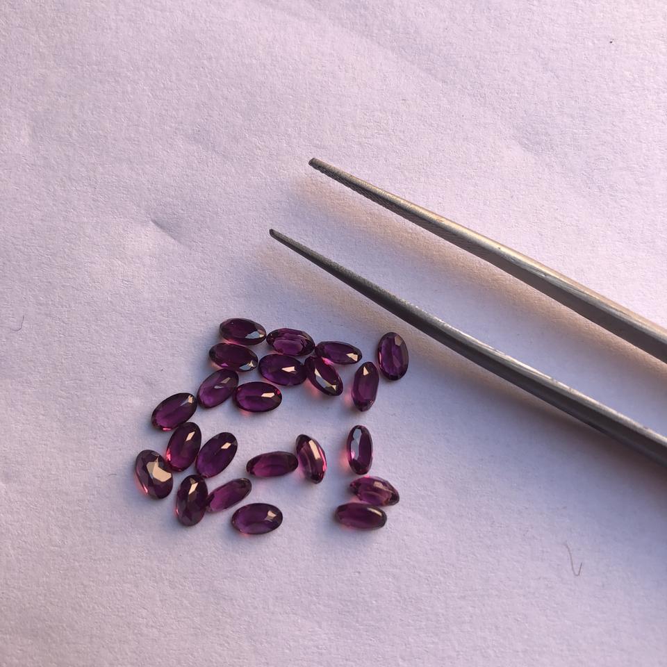 พลอยโกเมนโรโดไลต์ธรรมชาติขนาด3มม. 4มม. อัญมณีทรงรีแบบเหลี่ยมเพชรพลอยหลวม