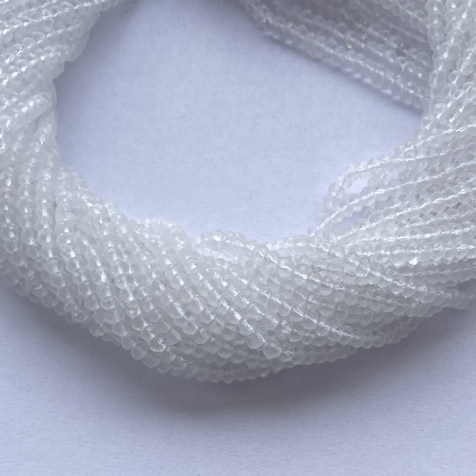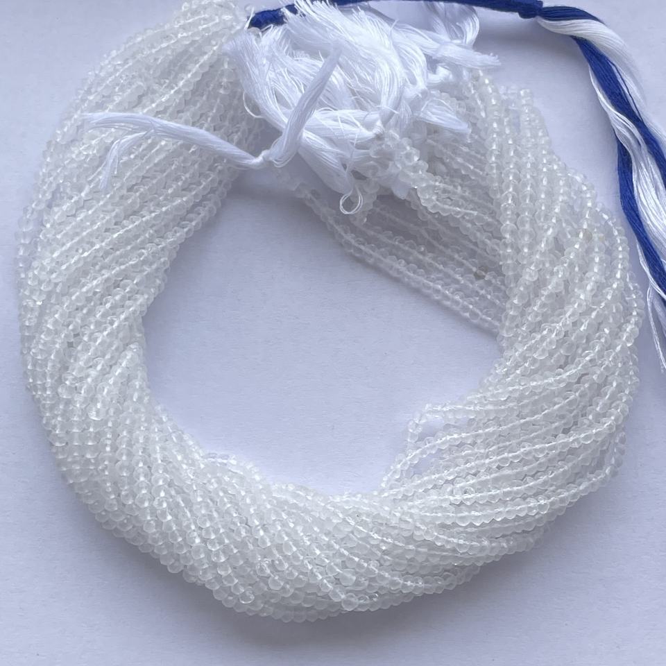 ลูกปัดคริสตัลควอตซ์สีขาวธรรมชาติขนาด 3 มม. 4 มม. ทรงรอนเดลล์เจียระไน เกรด AAA ผลิตด้วยมือจากอินเดีย ได้รับการรับรองจาก IGI สำหรับทำเครื่องประดับ