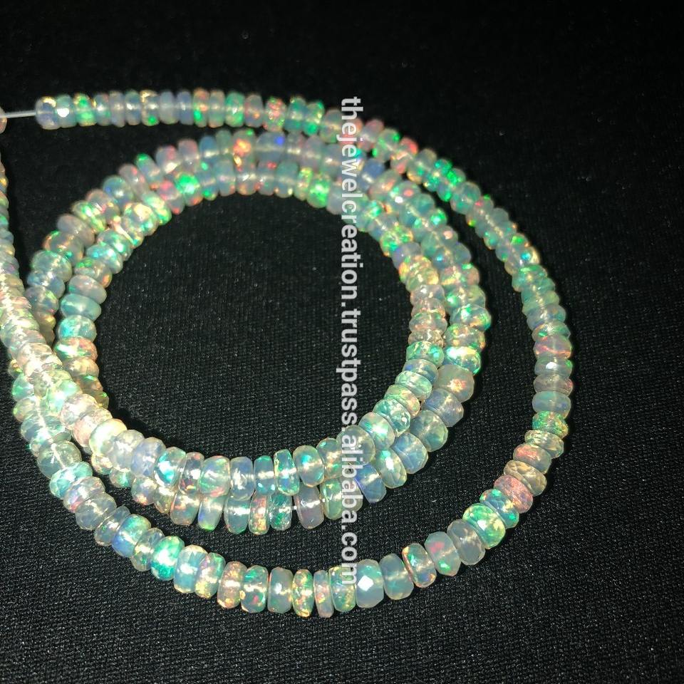 โอปอลเอธิโอเปียสีขาวธรรมชาติขนาด 3 มม. 5 มม. รูปทรงรอนเดลล์เจียระไน ลูกปัดพลอยหลวมแบบร้อยเป็นสาย ได้รับการรับรองจาก IGI สำหรับทำเครื่องประดับ