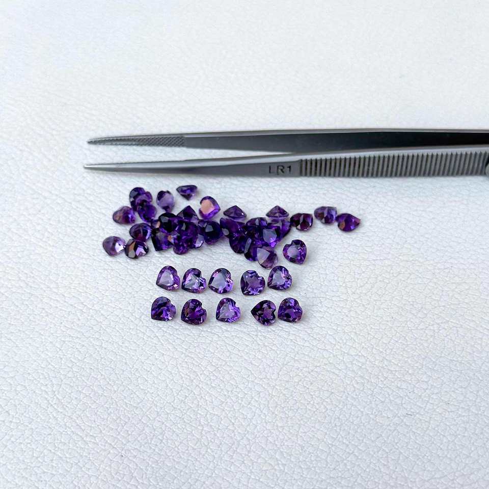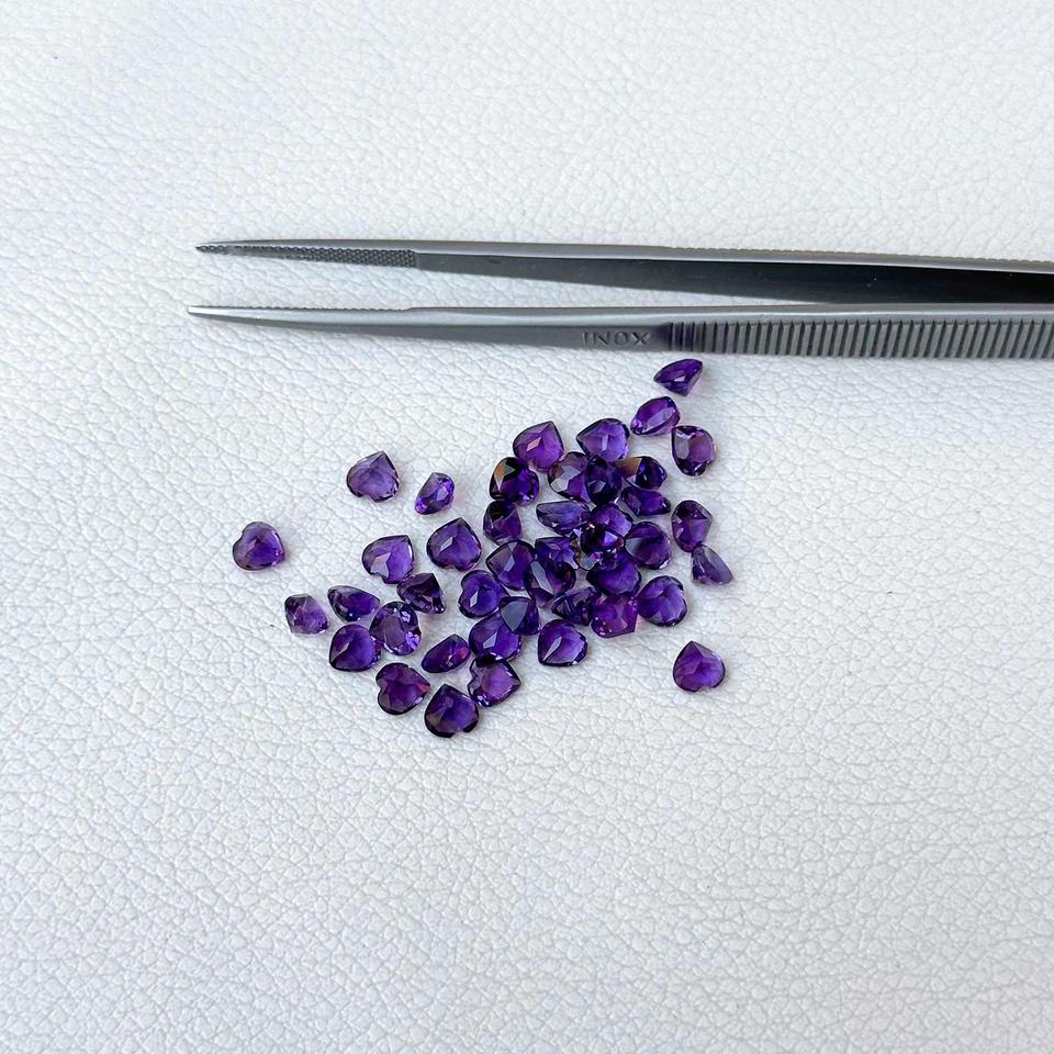 พลอยอเมทิสต์สไตล์แอฟริกันธรรมชาติ3มม. อัญมณีทรงหลวมแบบตัดรูปหัวใจอเมทิสต์สีม่วงหินกึ่งมีค่าสำหรับทำเครื่องประดับ