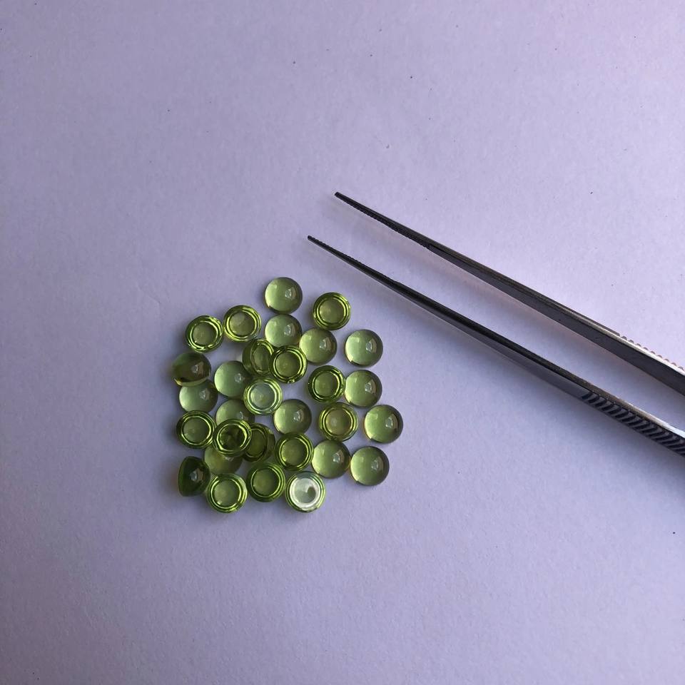 หินเพอริโดธรรมชาติ3มม. ทรงแบนหลังปรับเทียบอัญมณีหลวม