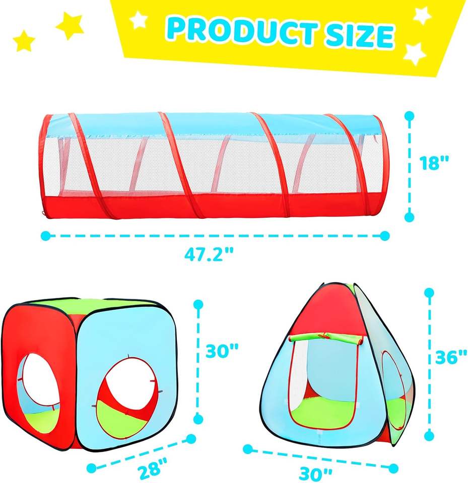 เต็นท์เด็กเล่นแบบพับได้3ชิ้น, เต็นท์สำหรับเด็กเต๊นท์ของเล่นป็อปอัพสำหรับเด็กวัยหัดเดินเด็กผู้ชายและเด็กผู้หญิงของขวัญ