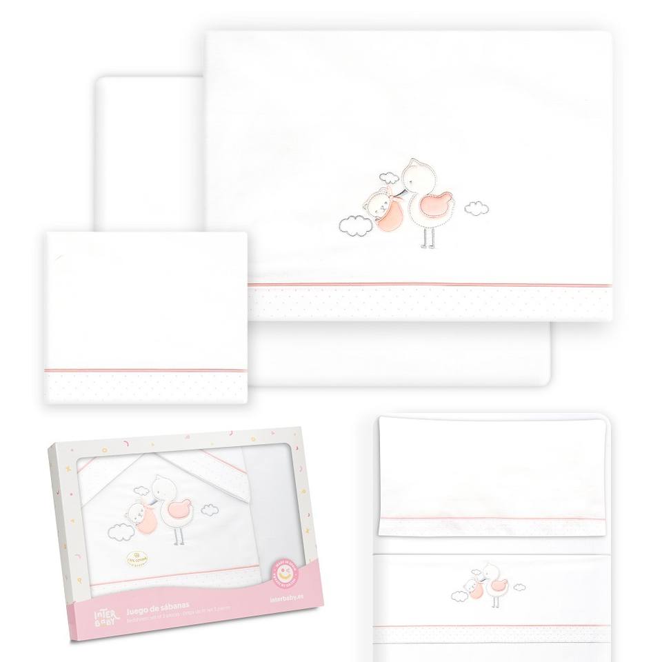 ชุดเครื่องนอนผ้าฝ้าย 100% 3 ชิ้นสำหรับเปลเด็ก รุ่นซีเกีย-ออโซผ้าปูที่นอนลายตัวอักษรสำหรับเด็ก