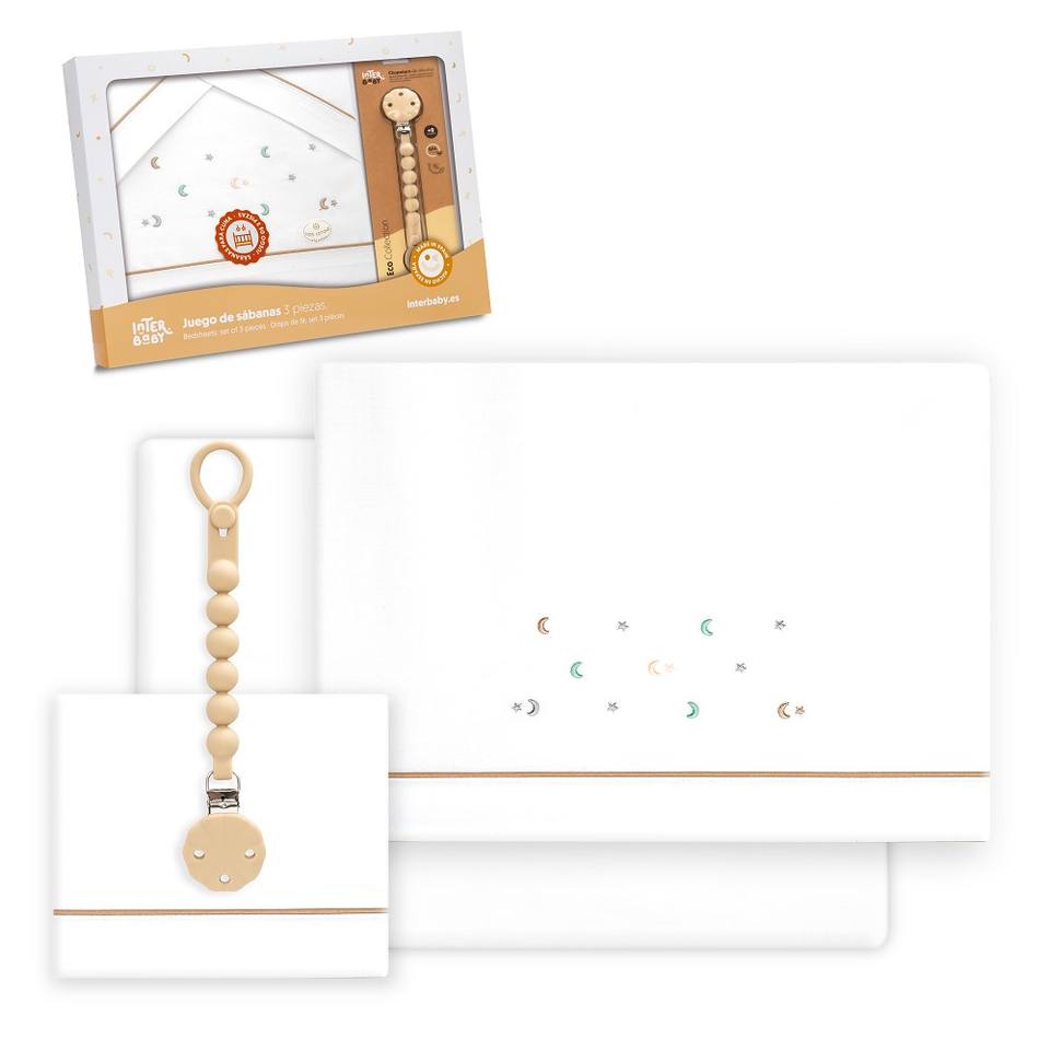 ชุดเครื่องนอน 3 ชิ้น พร้อมที่ใส่จุกนมหลอก ผ้าฝ้ายทอ 100% รุ่น Estrella-Luna