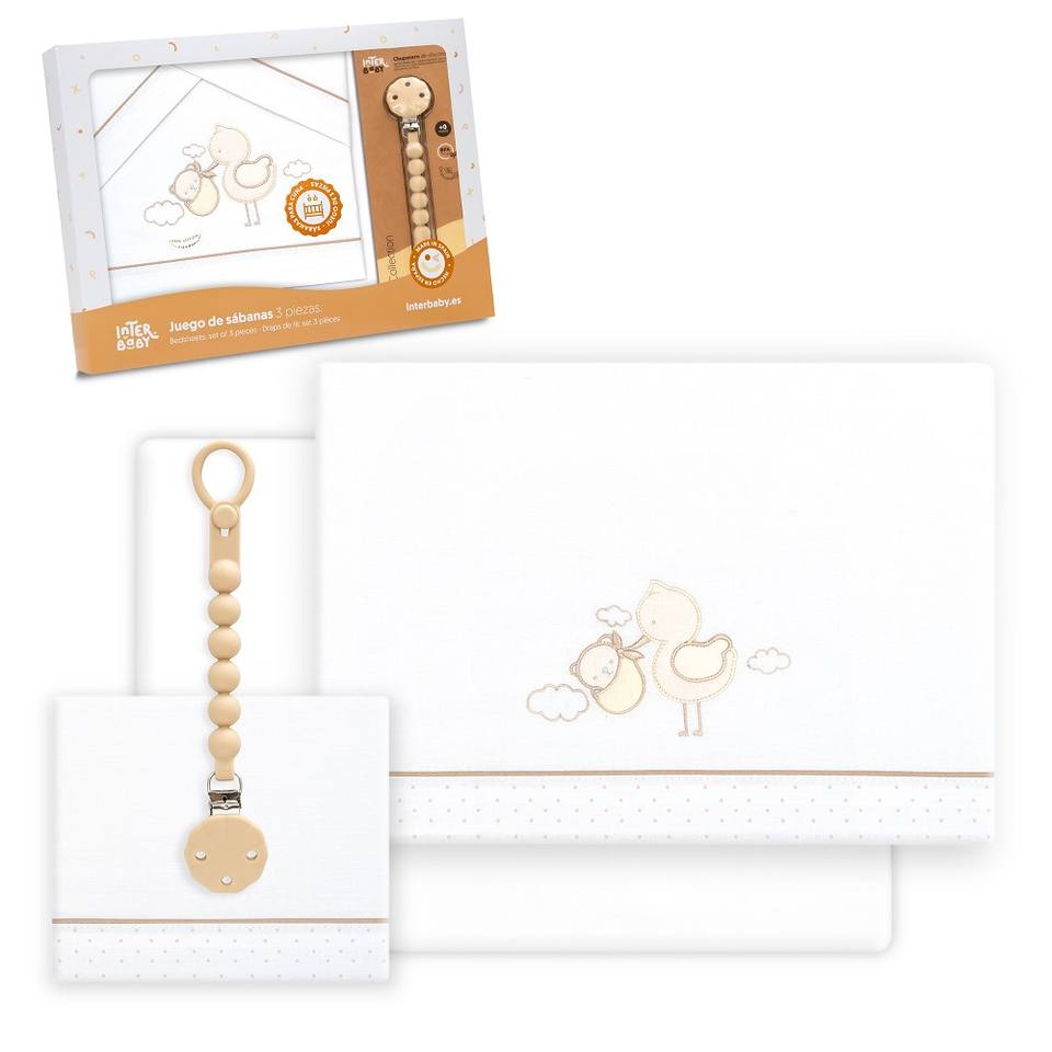 ชุดเครื่องนอนรุ่นซีเกีย-ออโซ 3 ชิ้น พร้อมที่ใส่จุกนมหลอก ผ้าปูที่นอนเด็ก 100% ผ้าฝ้าย ลายตัวการ์ตูน