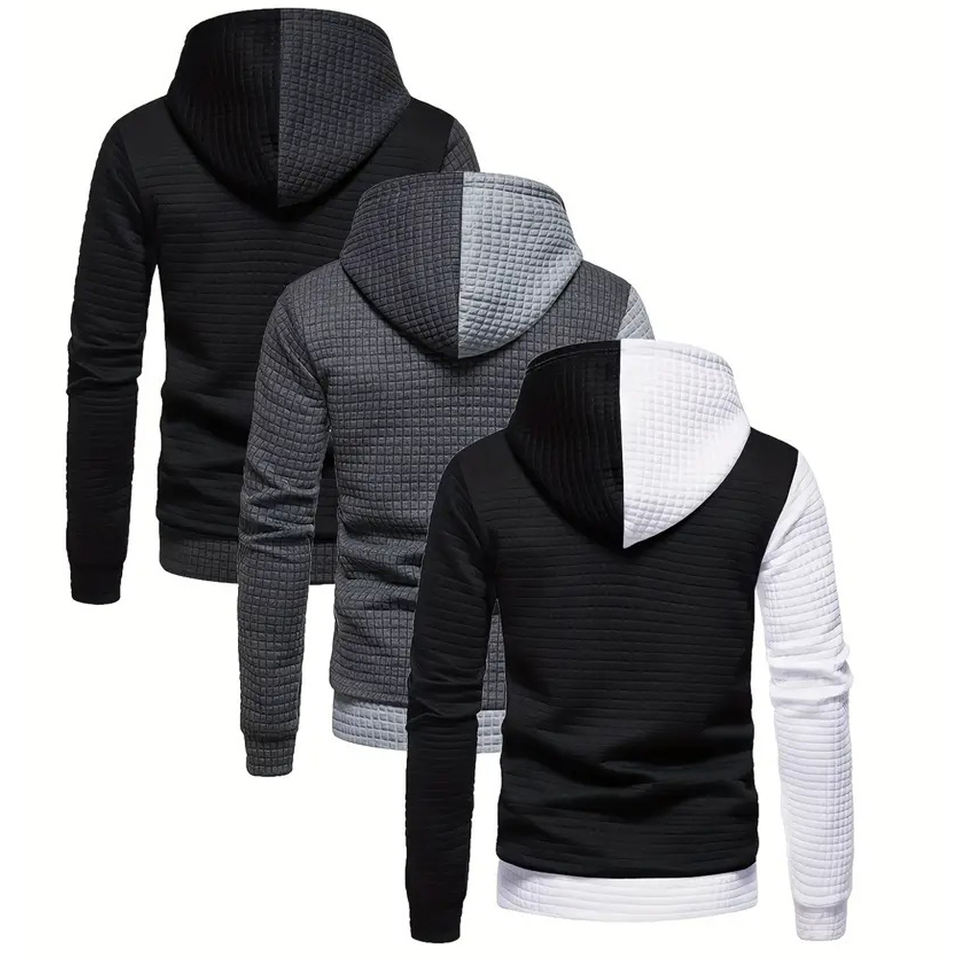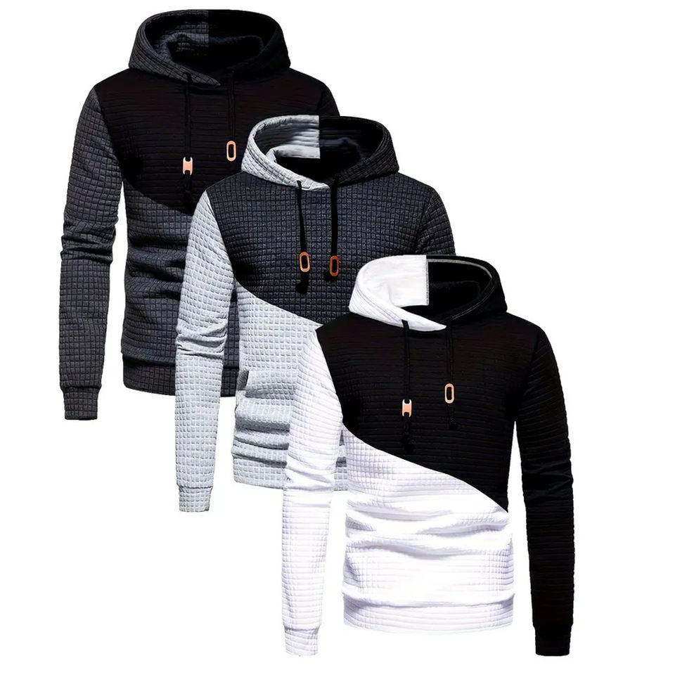 เสื้อฮู้ดบล็อกสี 3 ชิ้น สำหรับผู้ชาย - เสื้อผ้าลำลองสไตล์สตรีท ผ้าฝ้ายถัก 100% น้ำหนัก 360 กรัม ทรงปกติ มีกระเป๋า เหมาะสำหรับฤดูหนาว