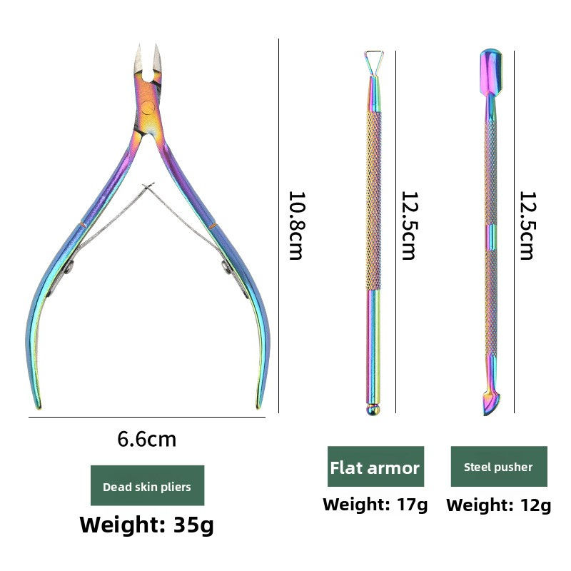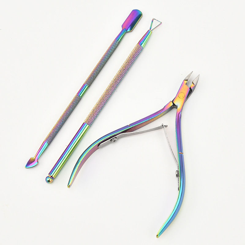 ชุดก้ามตัดหนังกำพร้าไทเทเนียมหลากสี3ชิ้นตัวผลักสแตนเลสสำหรับเล็บเท้าเล็บเท้าที่แหลมคมตรง
