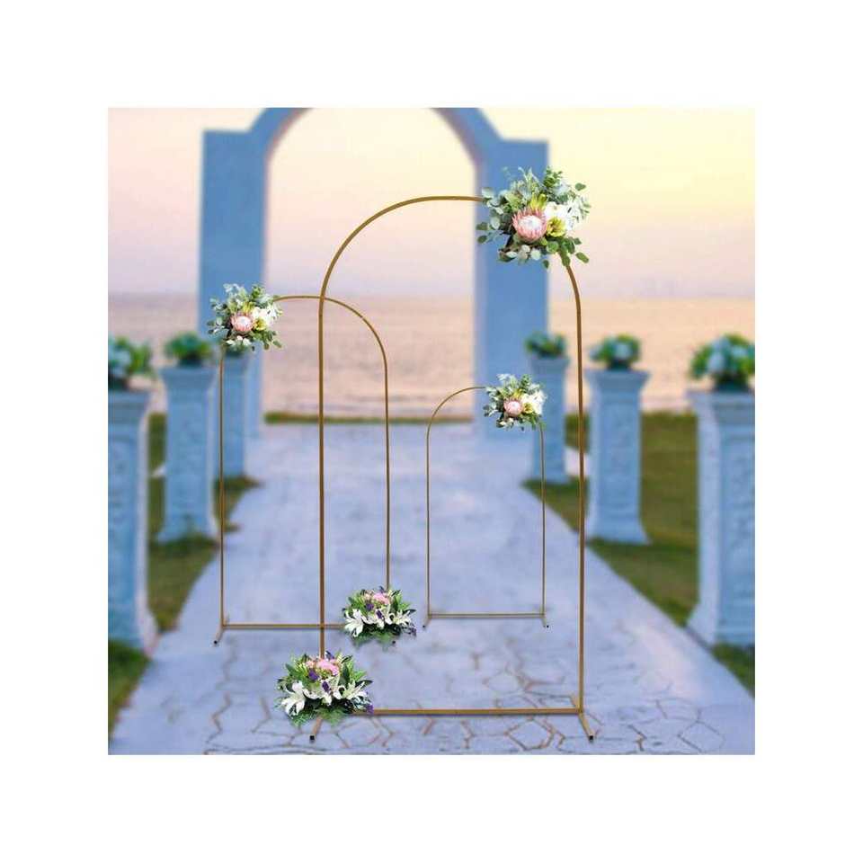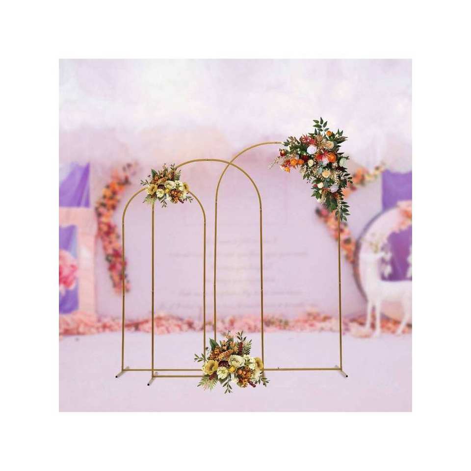 3pcs Gold Metal Wedding Arch Backdrop Stand Different Sizes Carbon Steel Flower Arch for Indoor Outdoor Bridal Party Ceremony