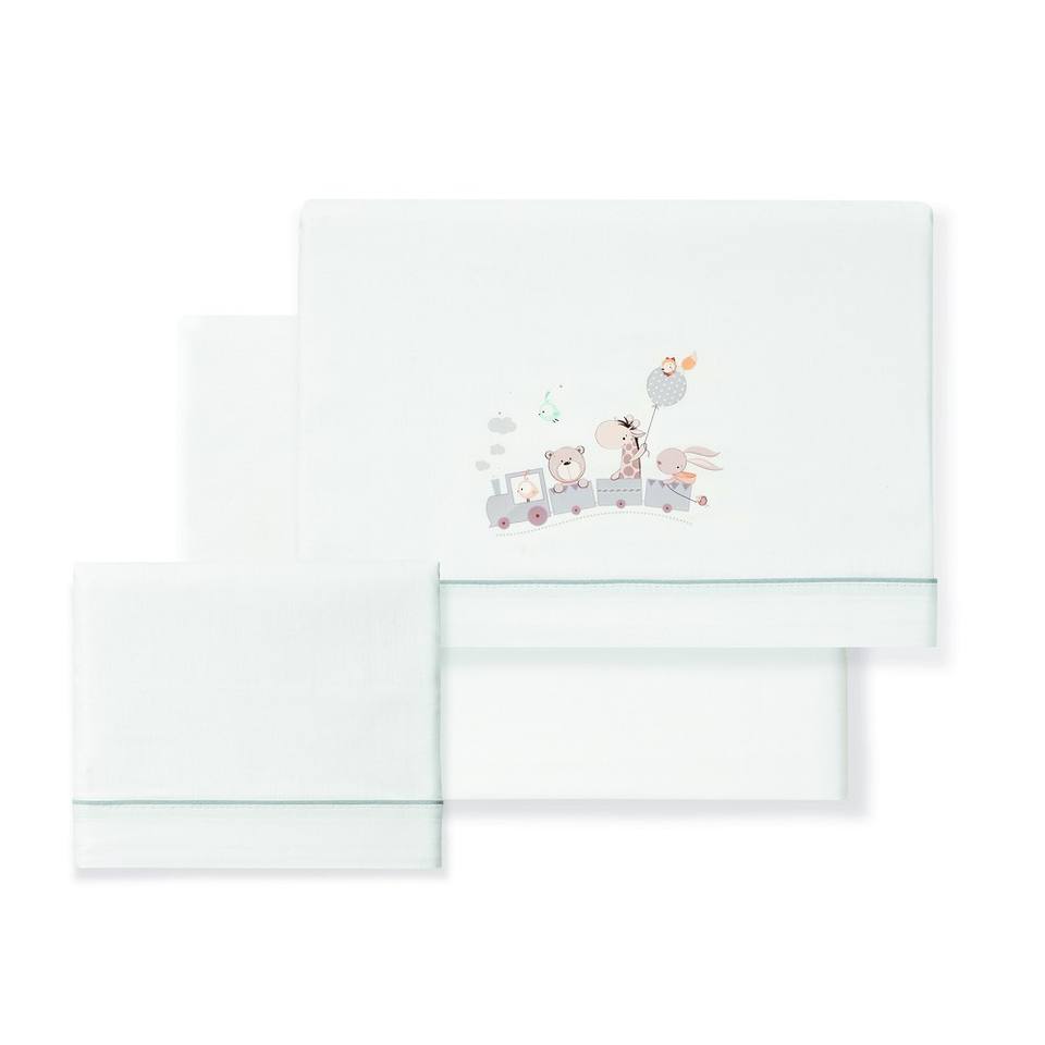 ชุดเครื่องนอนรถเข็นเด็ก ลายยีราฟ-รถไฟ 3 ชิ้น ผ้าฝ้าย 100% ทอแบบพิเศษ ลายการ์ตูน