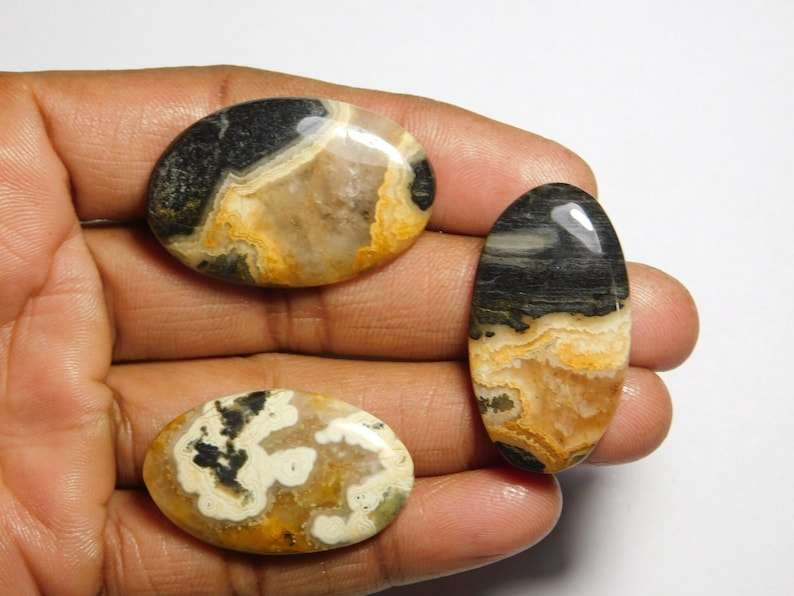 3ชิ้นชุดอัญมณีลูกไม้สีดำธรรมชาติอัญมณีหลวมอัญมณีสำหรับทำเครื่องประดับ109Cts
