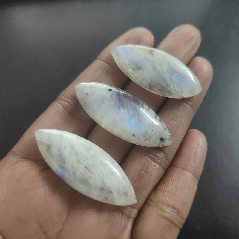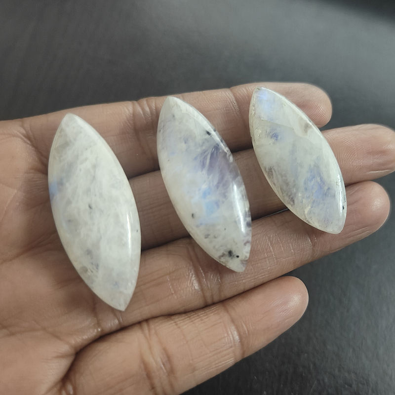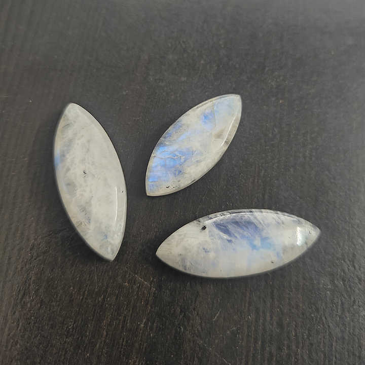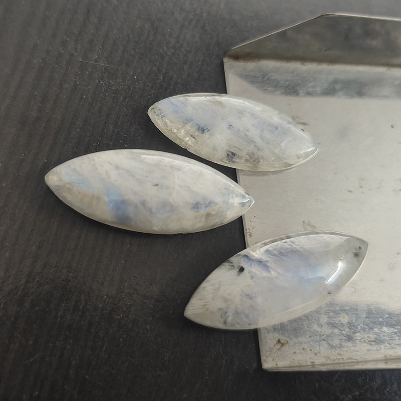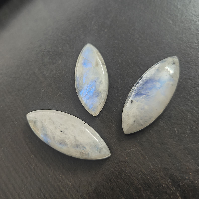 Gemstone:Rainbow moonstone 36x15mm to 40x15.5mm marquise cabochon