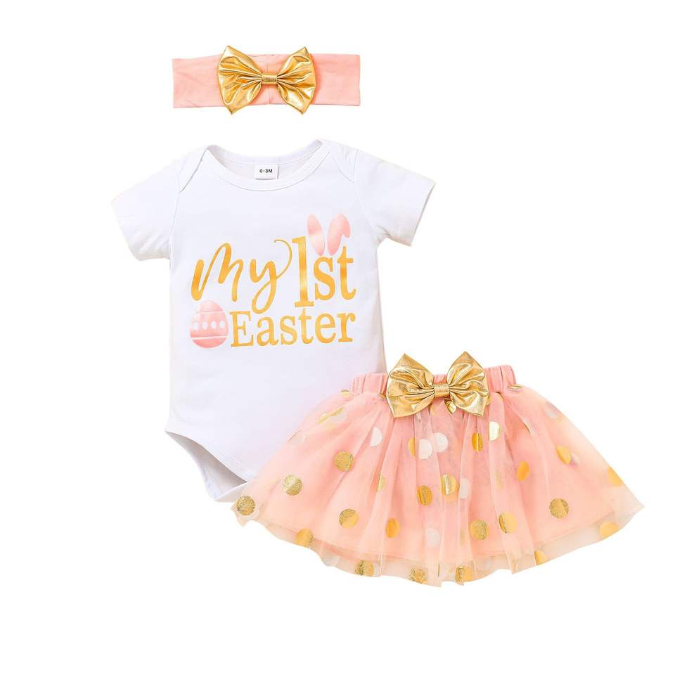 ชุดเสื้อผ้าเด็กผู้หญิงแรกเกิด 3 ชิ้น ชุดน่ารักสำหรับงานปาร์ตี้อีสเตอร์ครั้งแรก