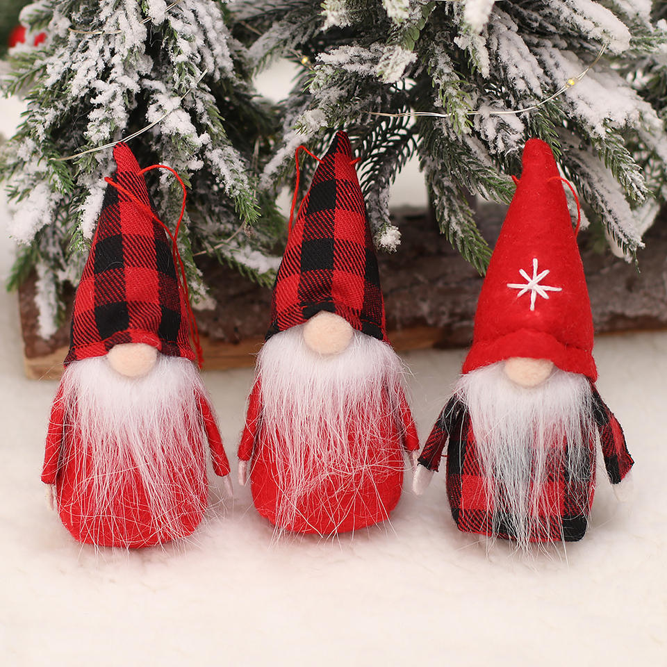 Product Name:Red Black Checkered Faceless Doll Ornaments Christmas Tree Hanging