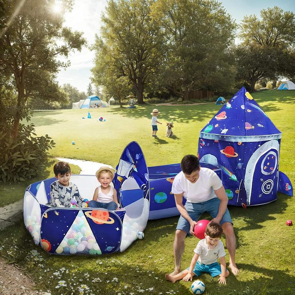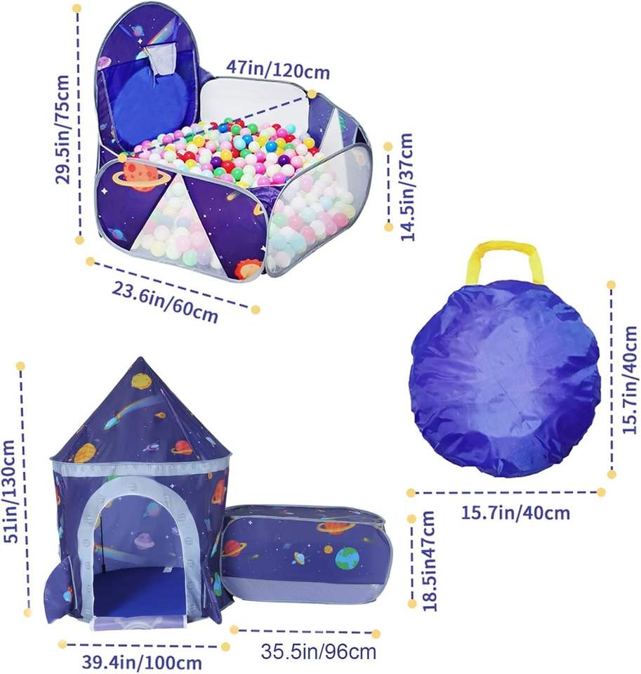 เต็นท์เด็กเล่นรูปจรวด 3 ชิ้น ชุดเต็นท์ทรงจรวดสำหรับเด็ก เต็นท์ป๊อปอัพขนาดเล็กสำหรับเล่นในบ้าน พร้อมบ่อบอล