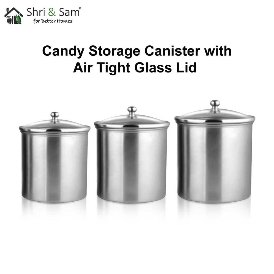 กล่องเก็บลูกอมสแตนเลส3ชิ้นพร้อมฝาแก้วสุญญากาศขนาด700มล. 1000มล. และขวดใส่1400มล.
