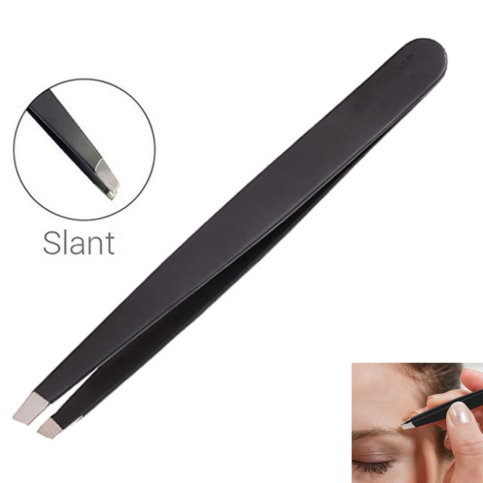 ชุดแหนบปลายแหลมแบบเฉียง 3 ชิ้น คุณภาพระดับมืออาชีพ ทนทาน ใช้ซ้ำได้ สีดำ ทำจากสแตนเลส สำหรับถอนขนคิ้ว พร้อมกล่องเก็บ