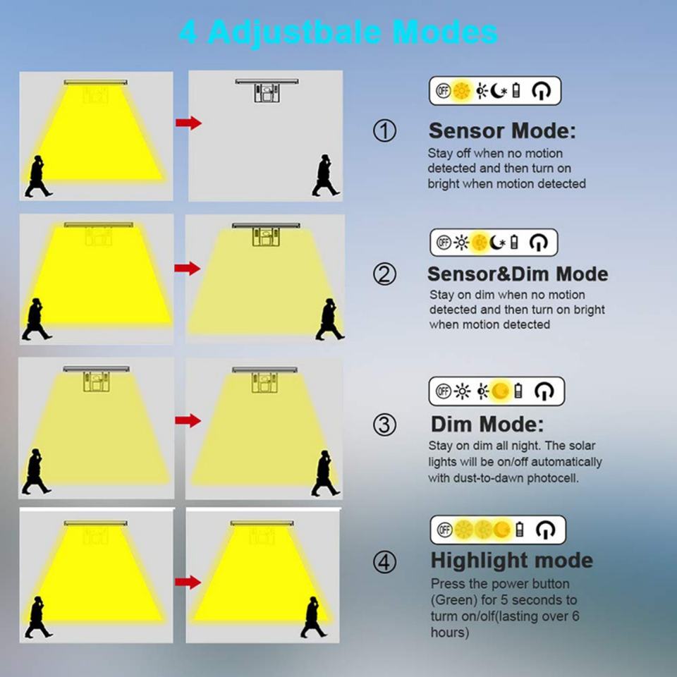 ไฟเซ็นเซอร์แสงอาทิตย์ สองสี ความจุแบตเตอรี่สูง 4 โหมด