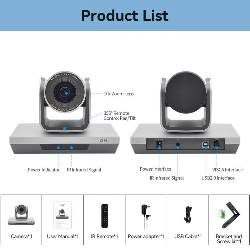 3X กล้อง IP PTZ Optics 4K กล้อง4K PTZ สำหรับการถ่ายทอดสดอุปกรณ์ถ่ายทอดสด