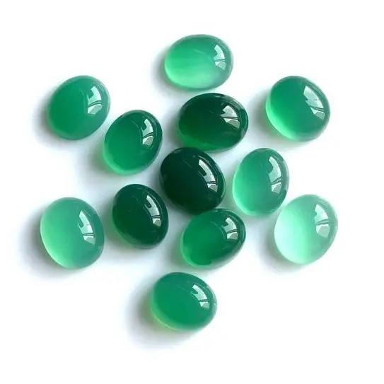 หินคาบอชอนทรงรี ชาลซีโดนีสีเขียวธรรมชาติ