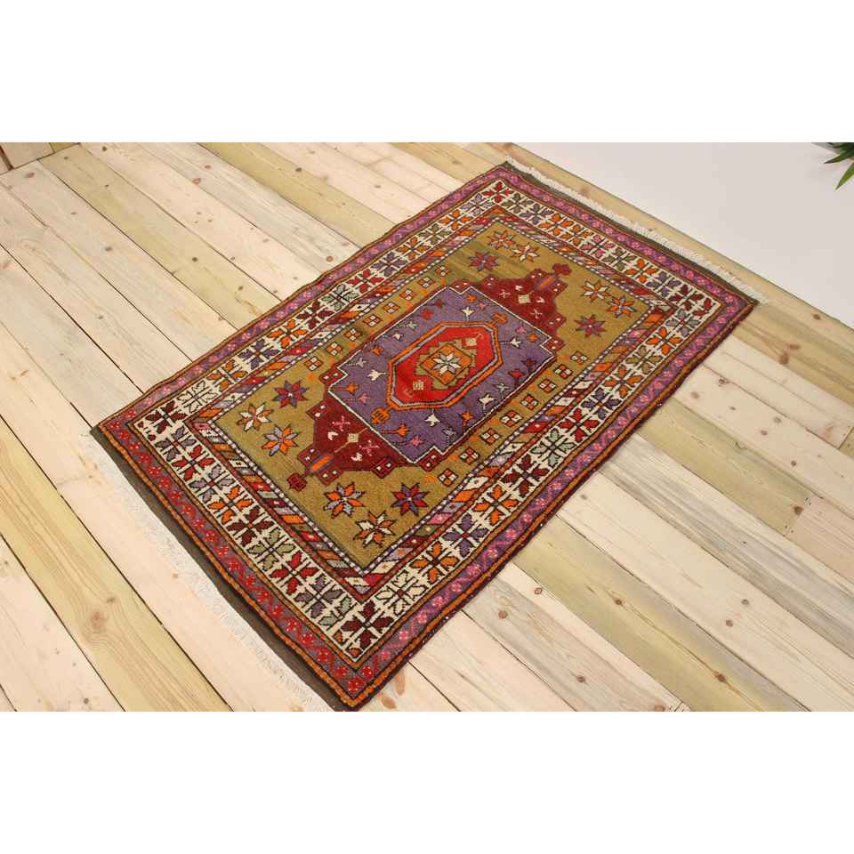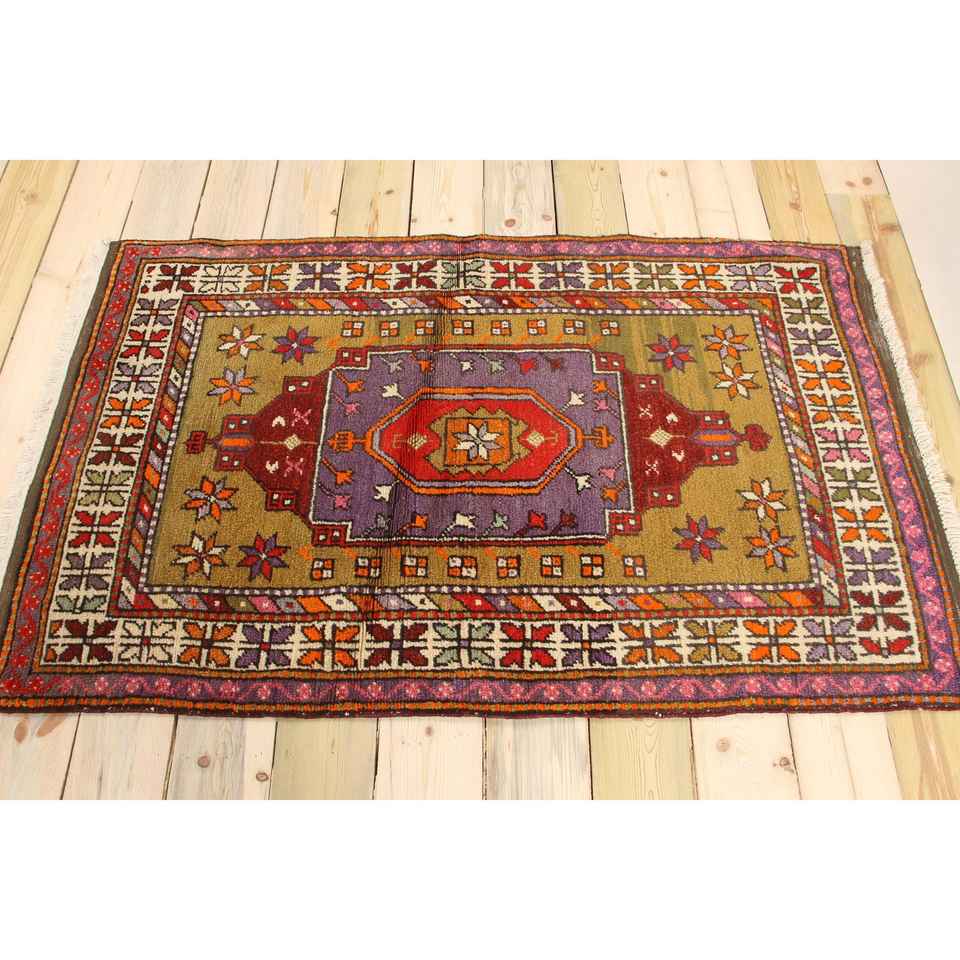 พรมตุรกีวินเทจขนาด 3x4.8 ฟุต พรมขนาดเล็ก พรมขนสัตว์สีแดง