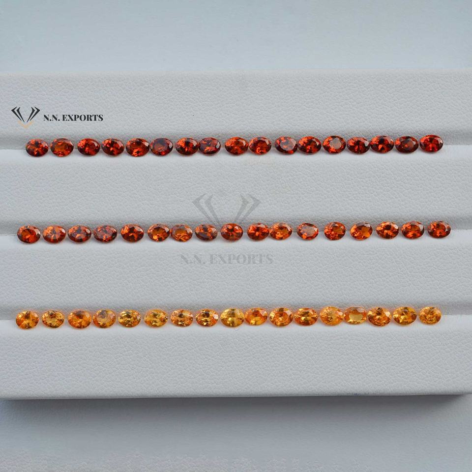 พลอยแกรนเนตแฟนตาสเปสซาร์ไทต์ธรรมชาติขนาด 3x4 มม. รูปทรงวงรีเหลี่ยมเพชรพลอย ขายส่ง คุณภาพดี สีส้มสดใส จากผู้ผลิตพลอยแกรนเนต