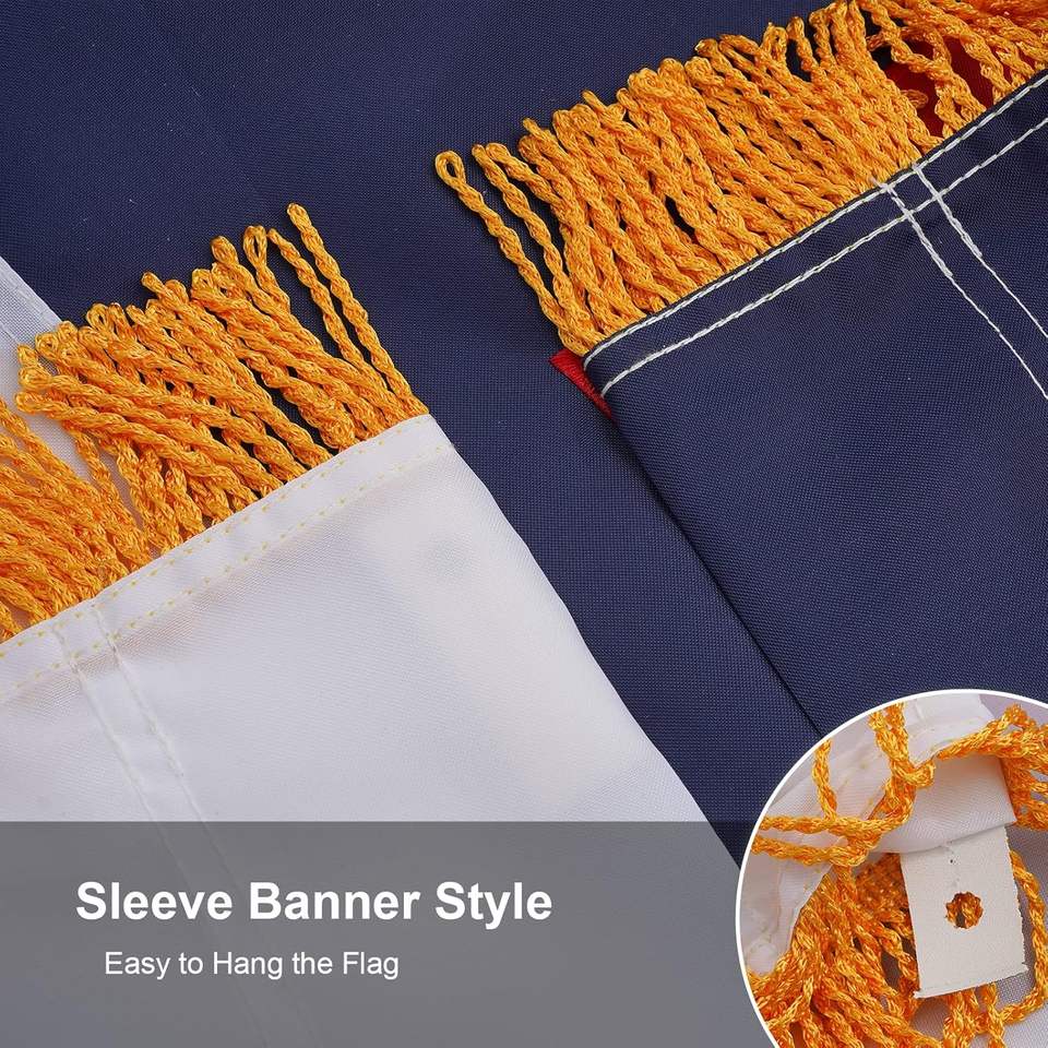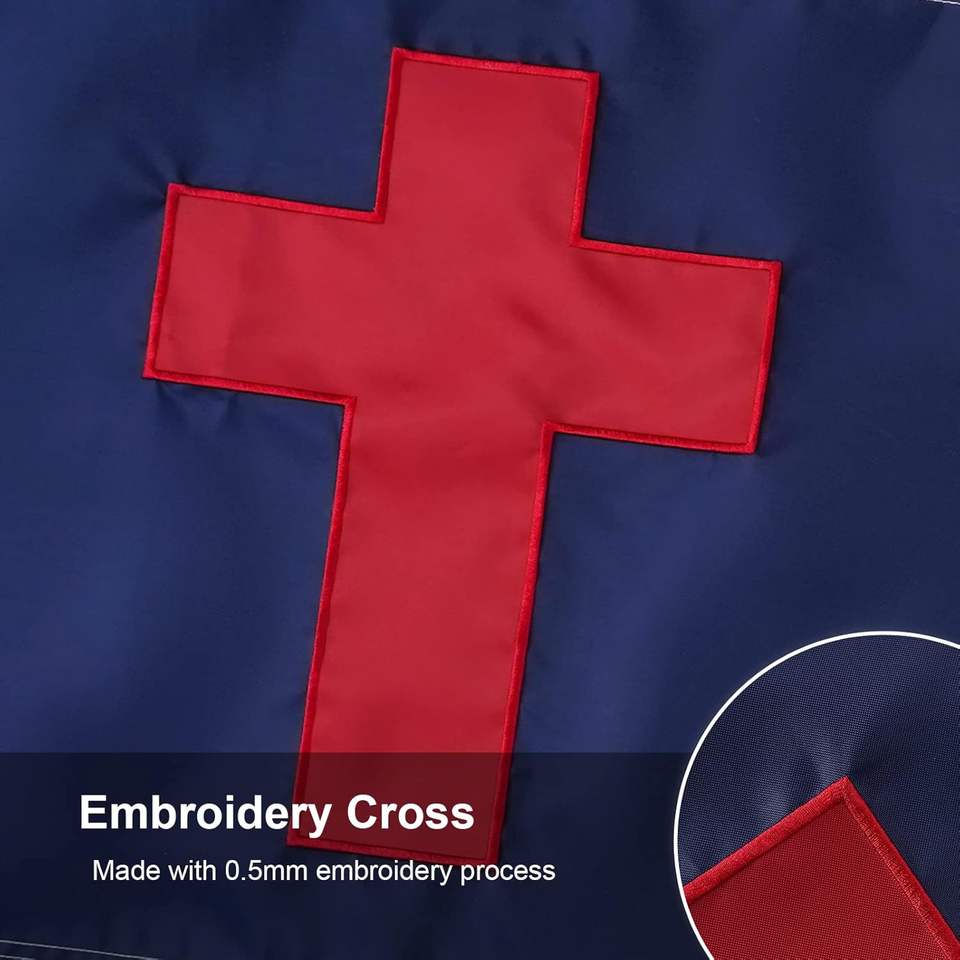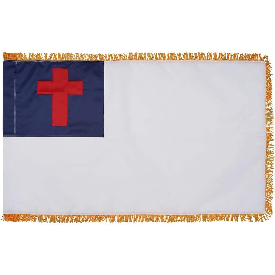 ธงคริสเตียนขนาด 3x5 ฟุต ขอบสีทอง ผลิตในสหรัฐอเมริกา ปักลายกางเขน พร้อมปลอกเสาแบบเย็บ ออกแบบเองได้ น้ำหนัก 0.0 กรัม ยี่ห้อ TOP FLAGSINC
