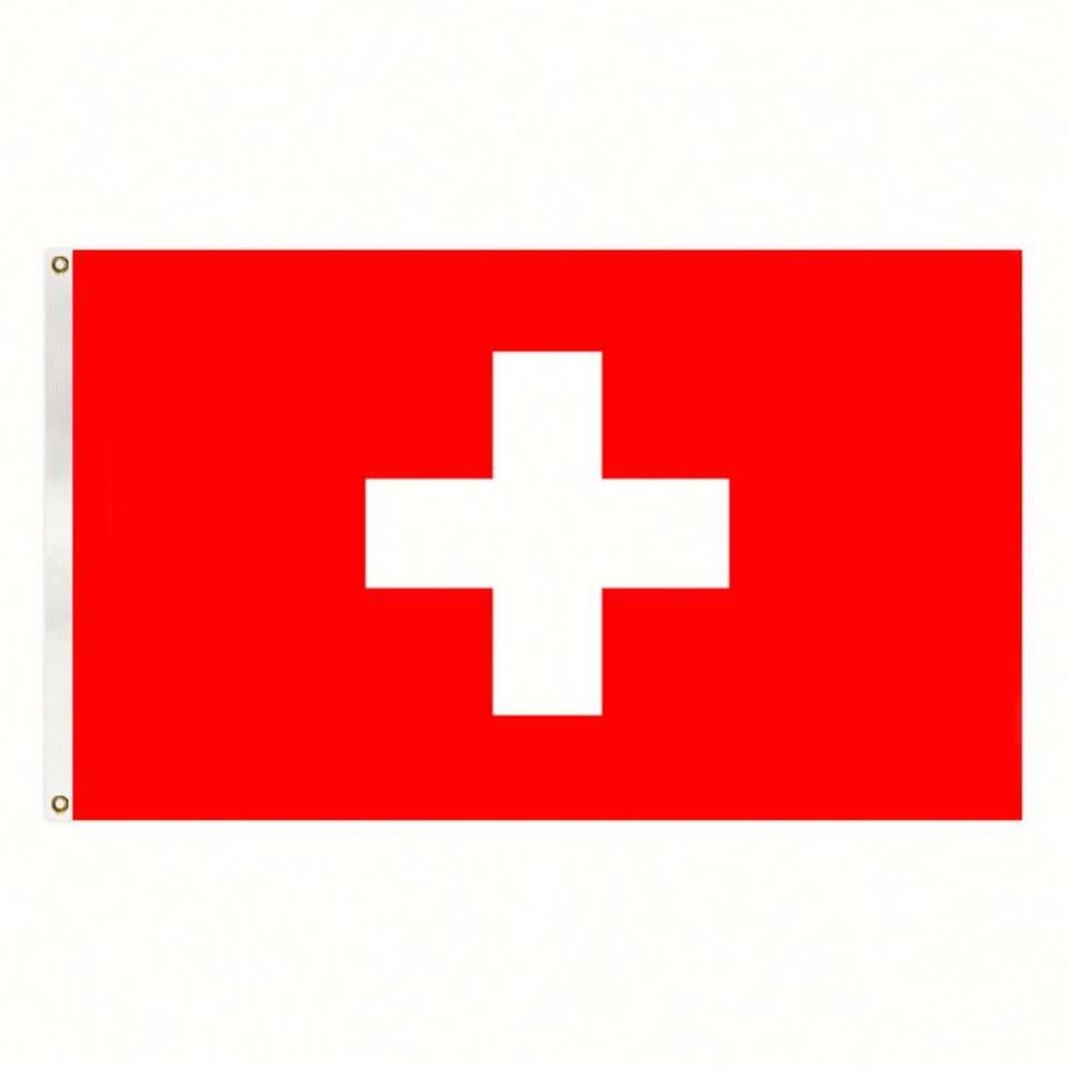 ธงชาติสวิตเซอร์แลนด์ ขนาด 3x5 ฟุต ทำจากโพลีเอสเตอร์ ราคาประหยัด พร้อมห่วงโลหะสองจุด