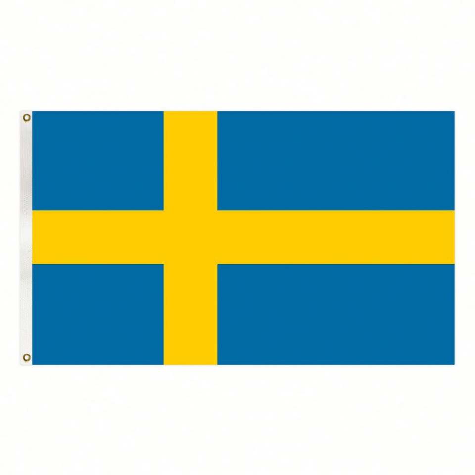 ธงชาติสวีเดนขนาด 3x5 ฟุต ทำจากโพลีเอสเตอร์ ราคาถูก พร้อมห่วงร้อยสายสองอัน