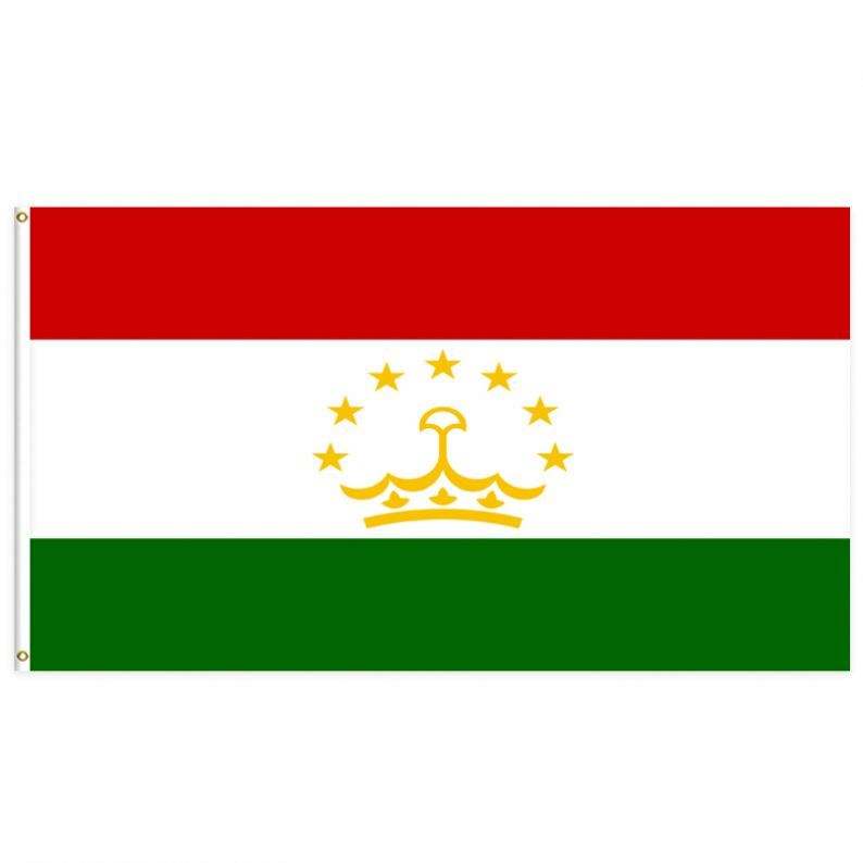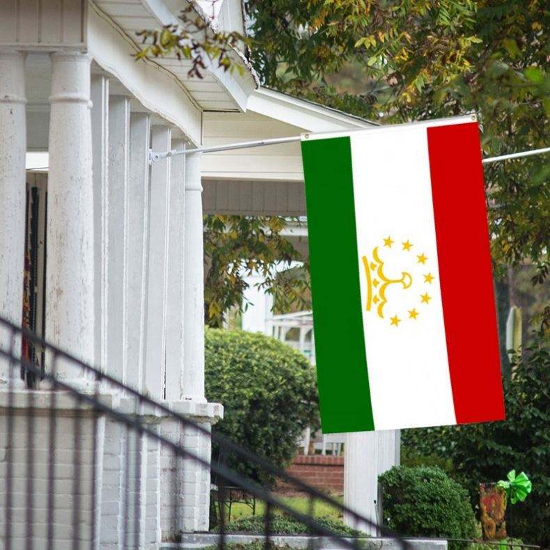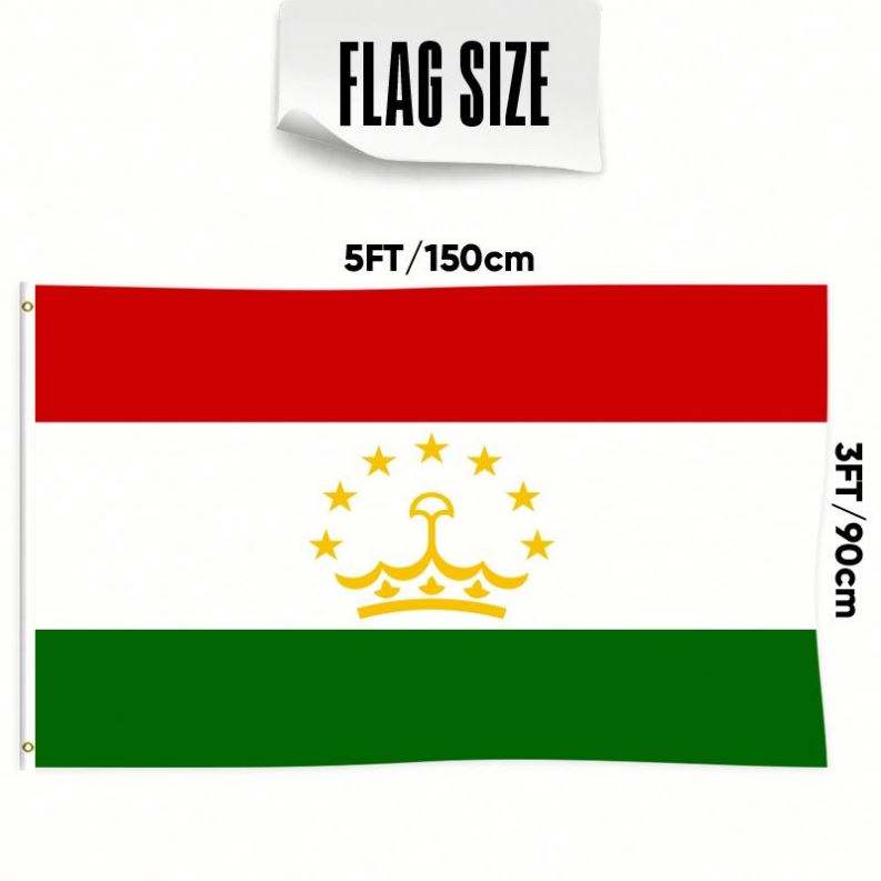 ธงชาติทาจิกิสถาน ขนาด 3x5 ฟุต ทำจากโพลีเอสเตอร์ พร้อมห่วงทองเหลืองสองวง ชั้นเดียว สำหรับแขวนตกแต่งภายนอกและภายใน