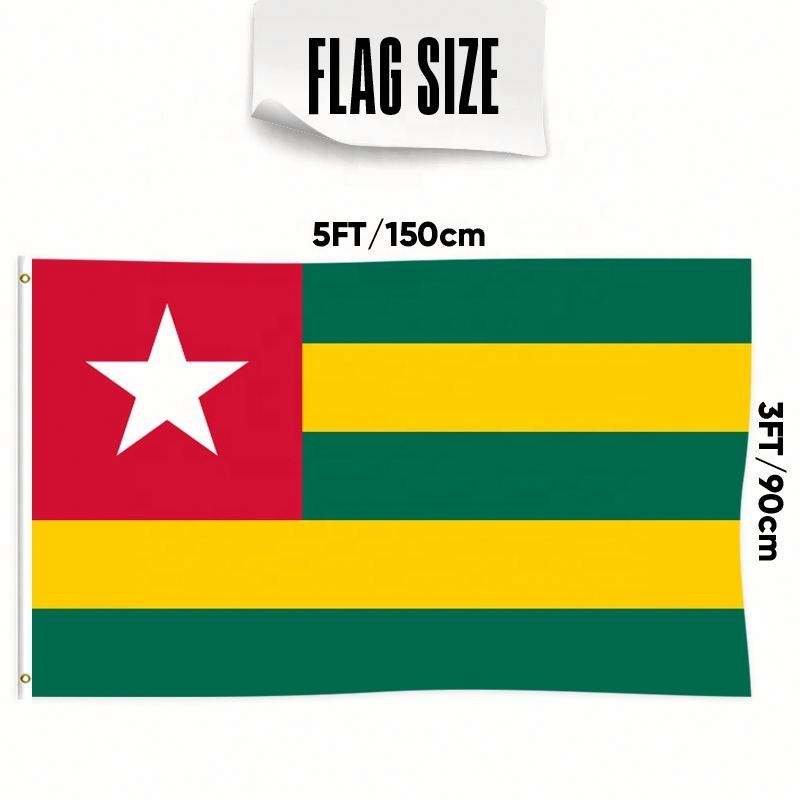 ธงโตโกขนาด 3x5 ฟุต ทำจากโพลีเอสเตอร์ พร้อมห่วงทองเหลืองสองวง ชั้นเดียว สำหรับแขวนตกแต่งภายนอกและภายในอาคาร