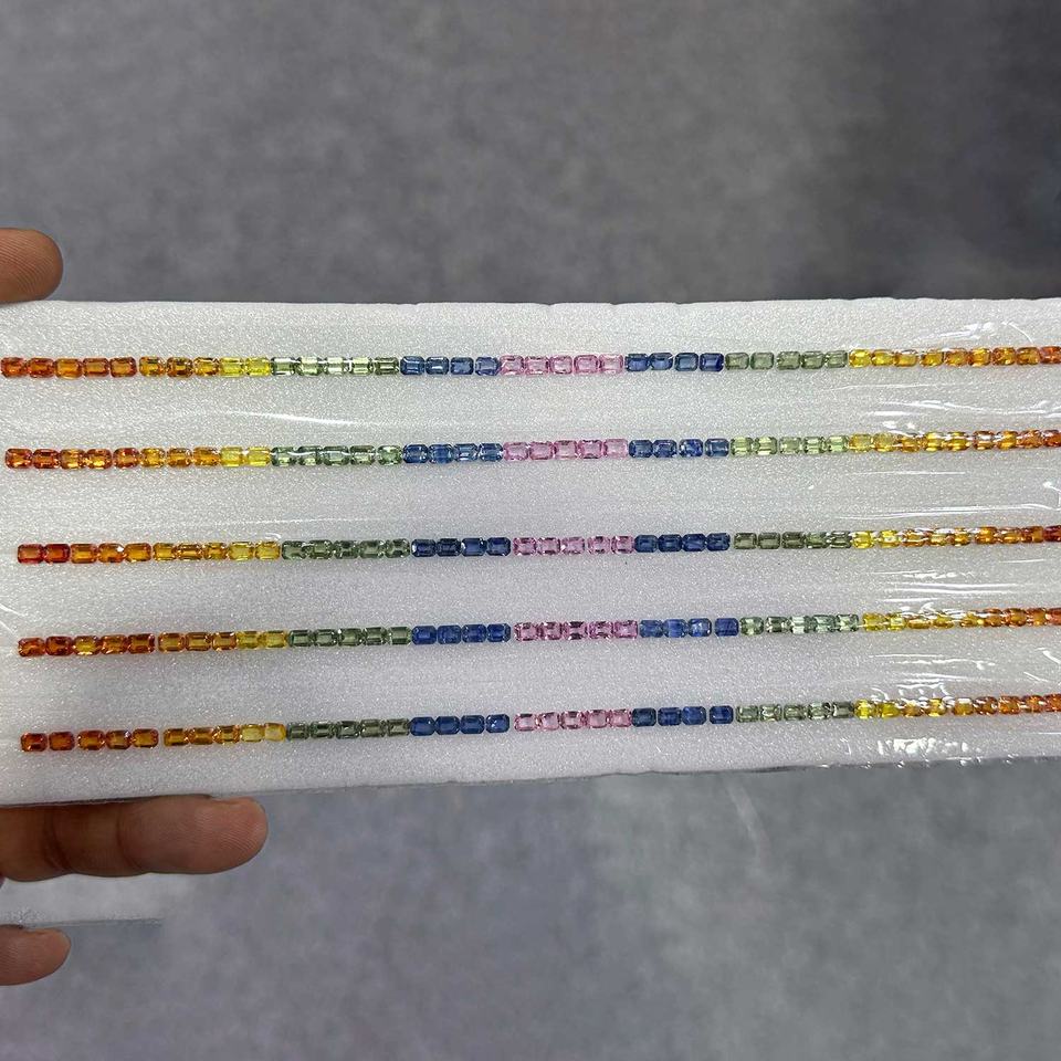 แถบพลอยแซฟไฟร์หลายเหลี่ยมธรรมชาติขนาด3X5มม. สีเหลืองสีชมพูสีเขียวน้ำเงิน