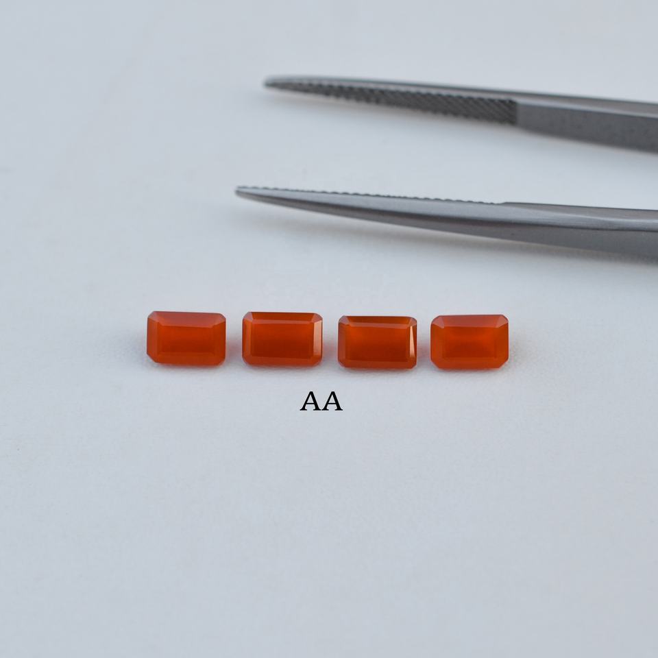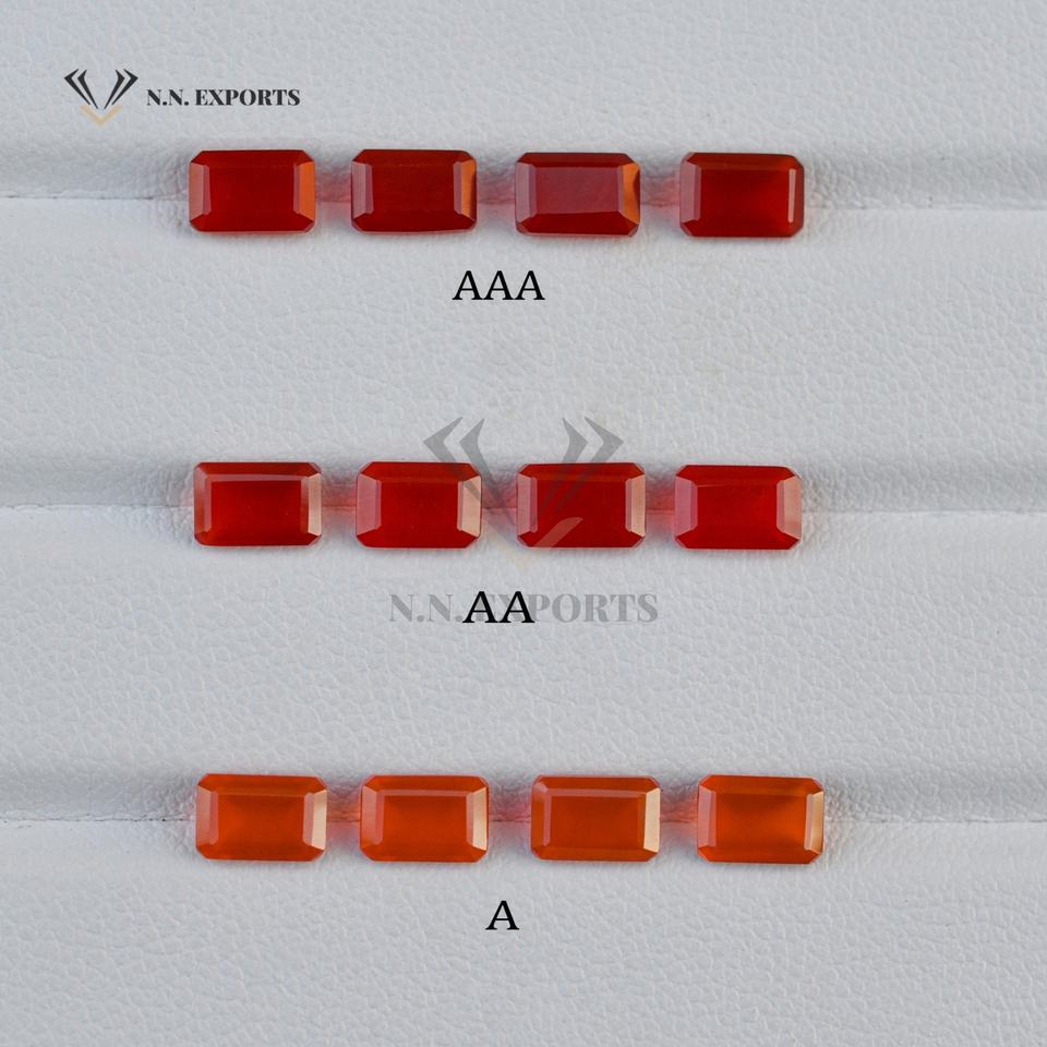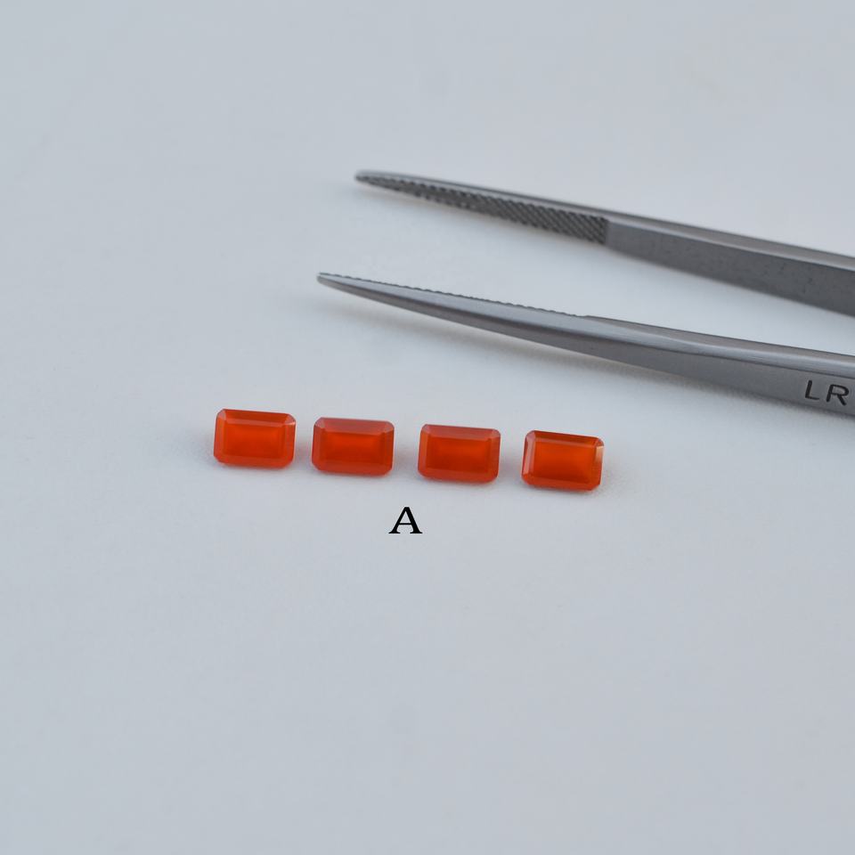 พลอยออนิกซ์สีแดงธรรมชาติขนาด 3x5 มม. ทรงแปดเหลี่ยมเจียระไน คุณภาพดี คละแบบ ได้รับการรับรอง ราคาโรงงาน