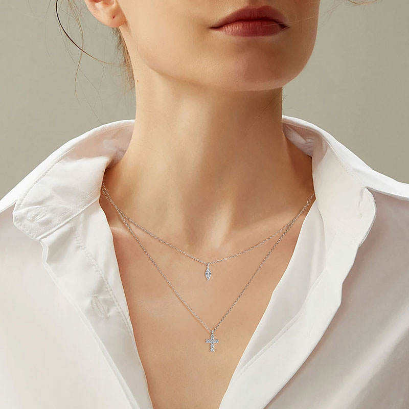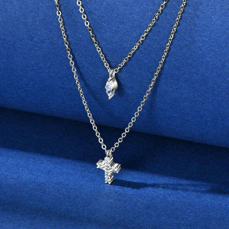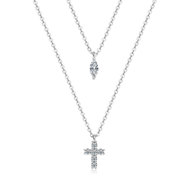 จี้รูปไม้กางเขนประดับโมอิสซาไนต์ทรงบาแกตต์เจียระไนแบบบริลเลียนต์ขนาด 3x6 มม. พร้อมตัวเรือนแบบกรงเล็บ สร้อยคอเงินแท้ 925 สำหรับผู้หญิง สินค้ามาใหม่