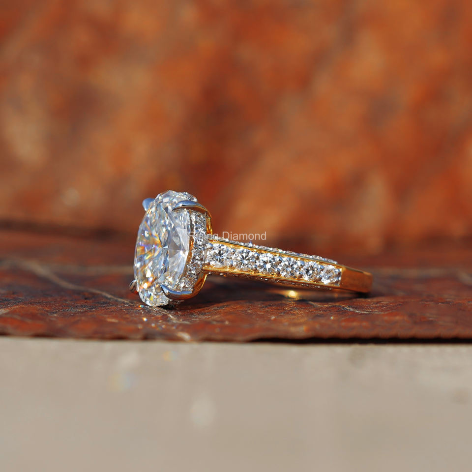 แหวนเพชรทรงรีสำหรับผู้หญิง4.0 CT Lab ที่โตขึ้นสีเหลืองทองรัศมีที่ซ่อนไว้สำหรับการหมั้นและการแต่งงานของขวัญวันครบรอบแต่งงานสำหรับเธอ
