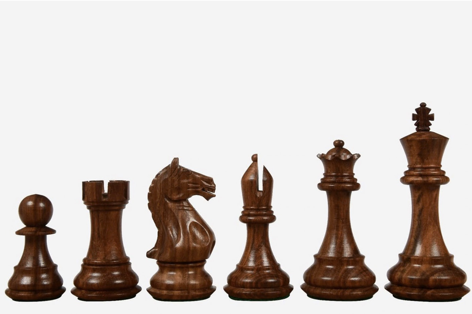ชุดหมากรุกไม้ขนาด4.0นิ้วทำมือสำหรับทัวร์นาเมนท์พร้อมชิ้นส่วนที่มีน้ำหนักและขัดเรียบสำหรับบ้านและชุดของขวัญ