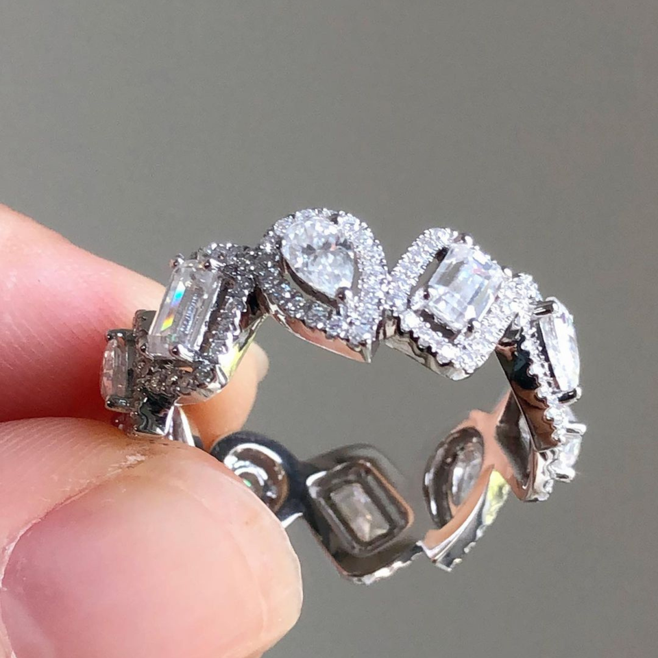 4.00กะรัต VVS มรกต & ลูกแพร์ตัดในห้องปฏิบัติการปลูกเพชรแฟนซีเครื่องประดับงานแต่งงานแบบเต็มชั่วนิรันดร์14K ทองคำขาว