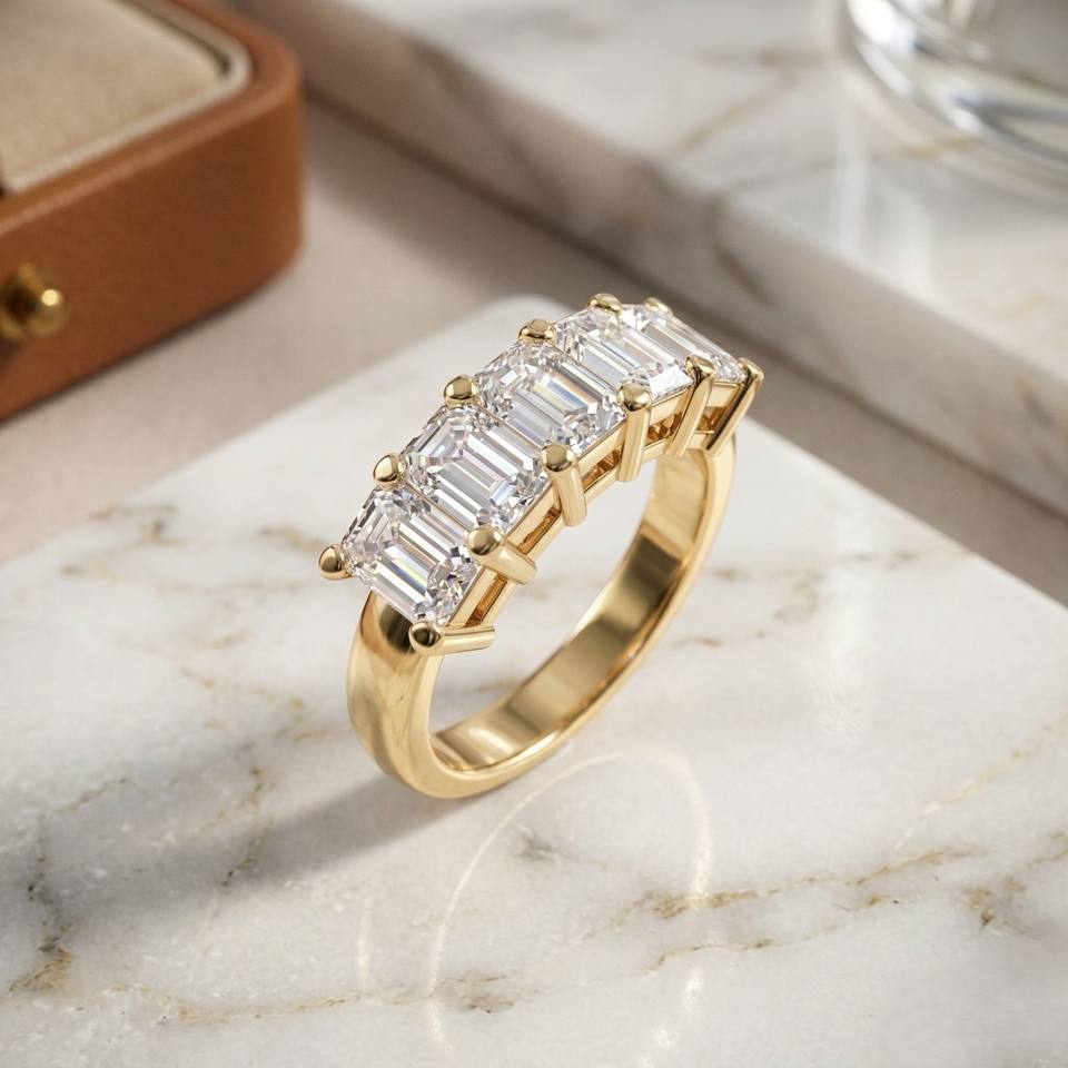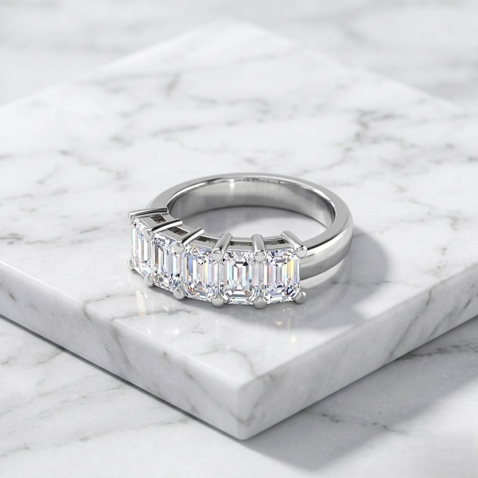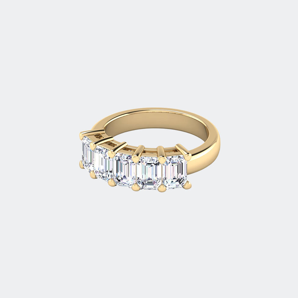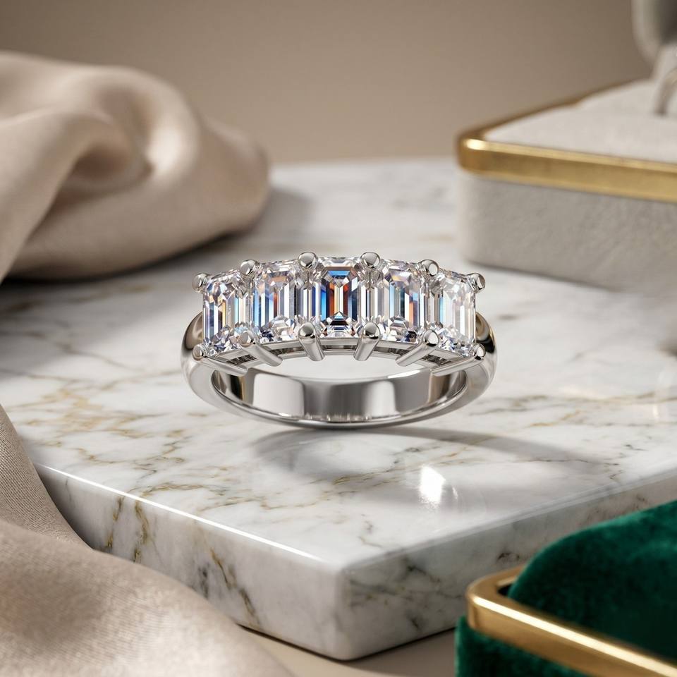 แหวนวงแหวนห้าเม็ดทรงสี่เหลี่ยมมรกต 4.00 กะรัต