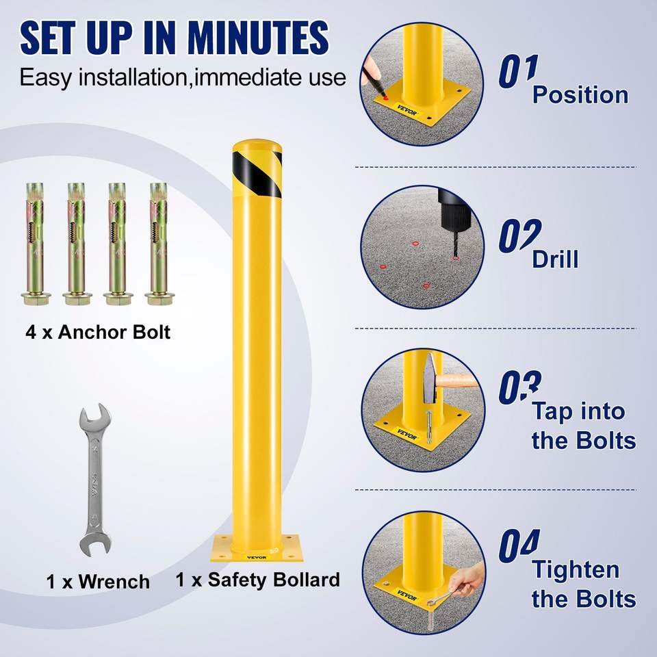 4-1/2 "จาก36" ความสูงเคลือบผงสีเหลืองความปลอดภัยเหล็กความปลอดภัยความปลอดภัยความปลอดภัยความปลอดภัยความปลอดภัยของพื้นที่จอดรถขอบ4สลักเกลียวสมอฟรี