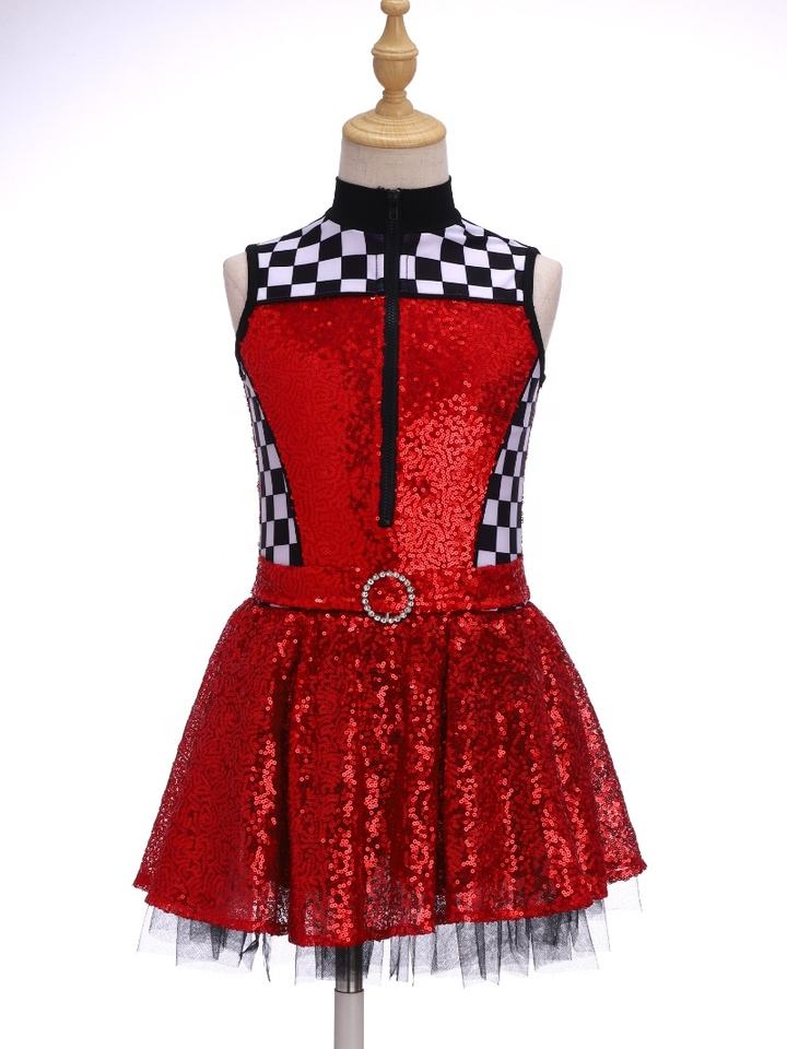 ชุดเต้นรำบอลรูมสมัยใหม่สำหรับเด็กผู้หญิงอายุ 4-14 ปี ชุดฝึกซ้อมเต้นรำ ชุดนักแข่งรถ กระโปรงบาน มีกางเกงในตัว
