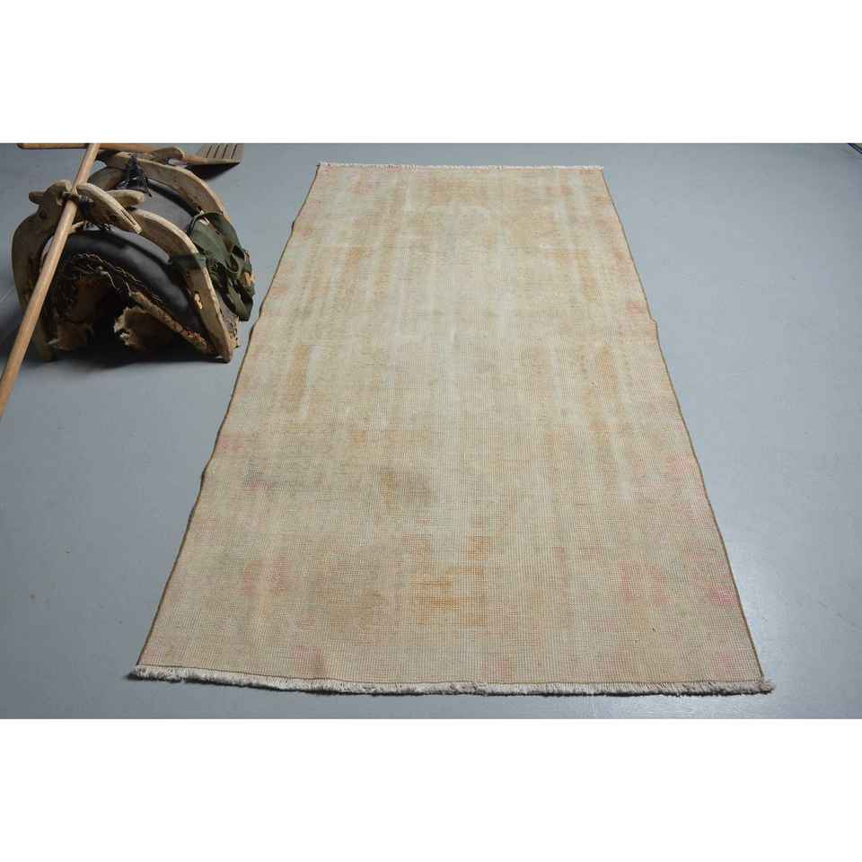 4.1x7.1 ft Vintage Rug, Beige Southwestern Turkish Rug Wool