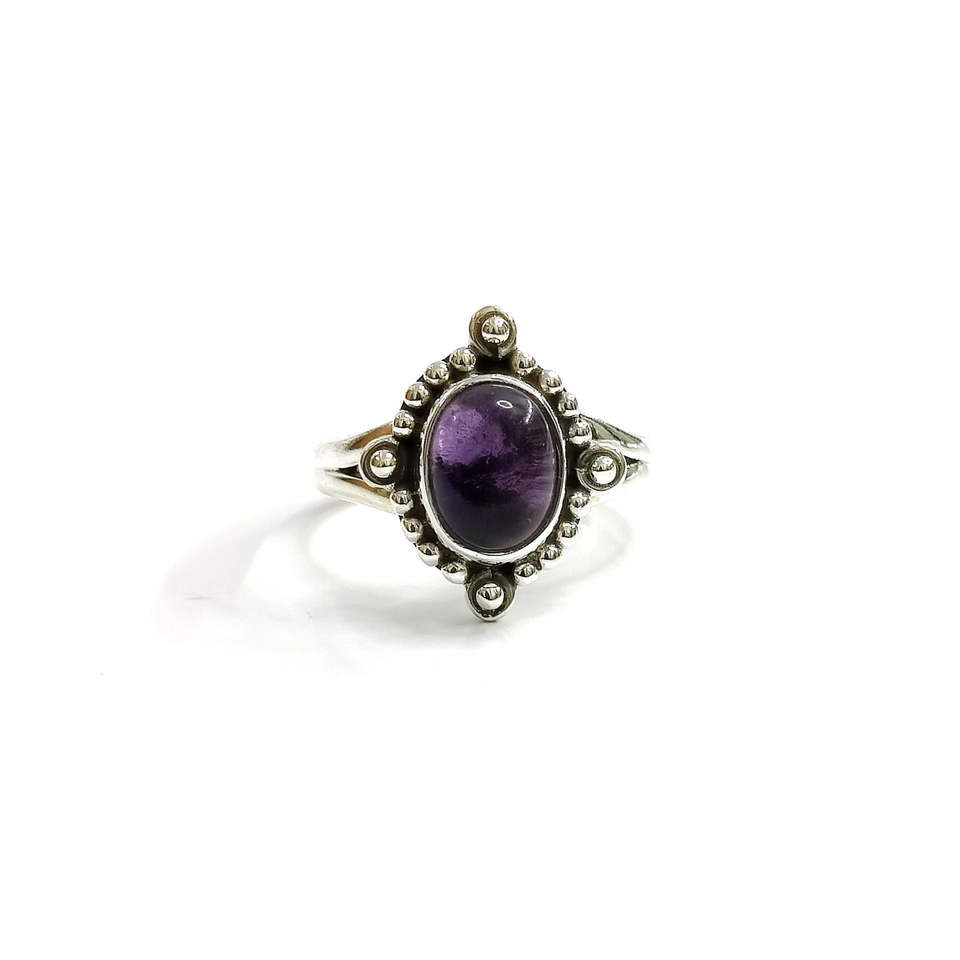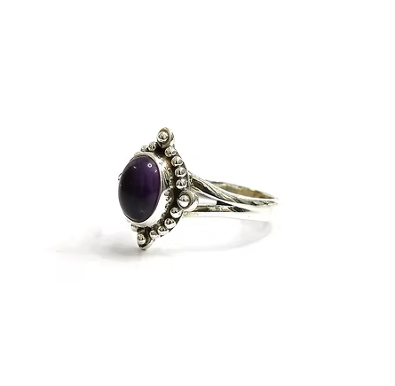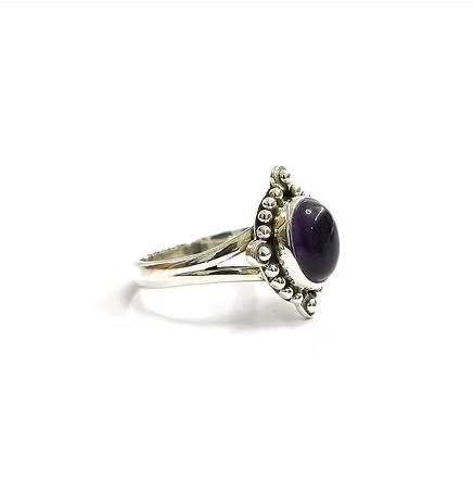 แหวนเงินแท้ดีไซน์พรีเมียมประดับอเมทิสต์ทรงรีแบบคาโบชอง เครื่องประดับสวมใส่สบาย น้ำหนักเบา สไตล์มินิมอล