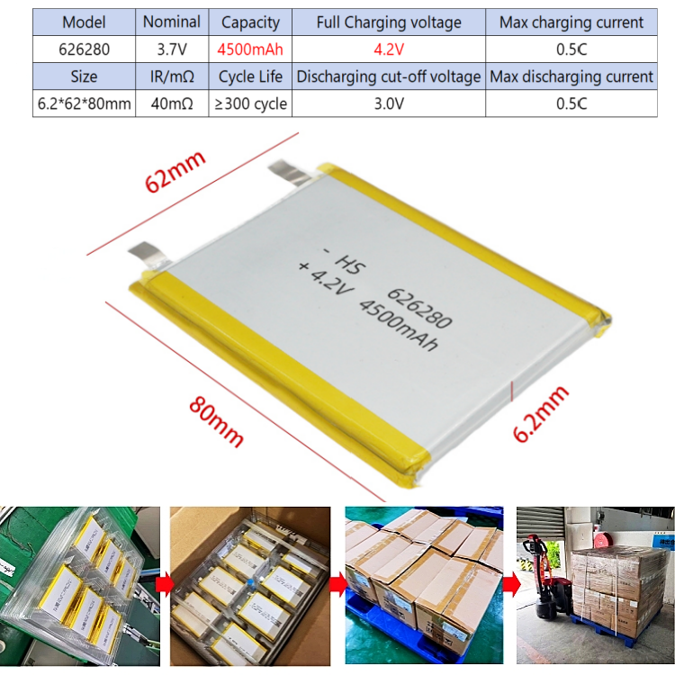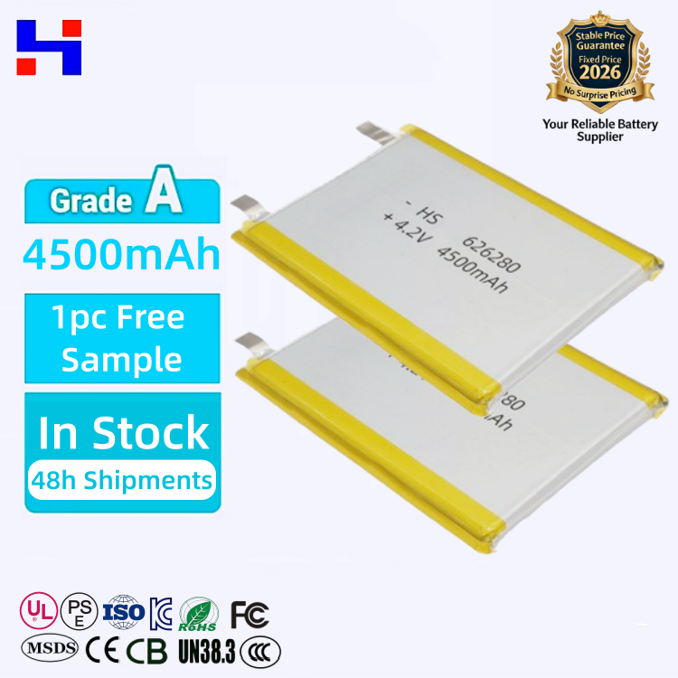แบตเตอรี่ลิเธียมไอออนแบบชาร์จได้ 4.2V 4500MAH 626280 3.7V 3.8V Lifepo4 กึ่งโซลิดสเตท 2000MAH 400MAH 5000MAH ได้รับการรับรองมาตรฐาน CE