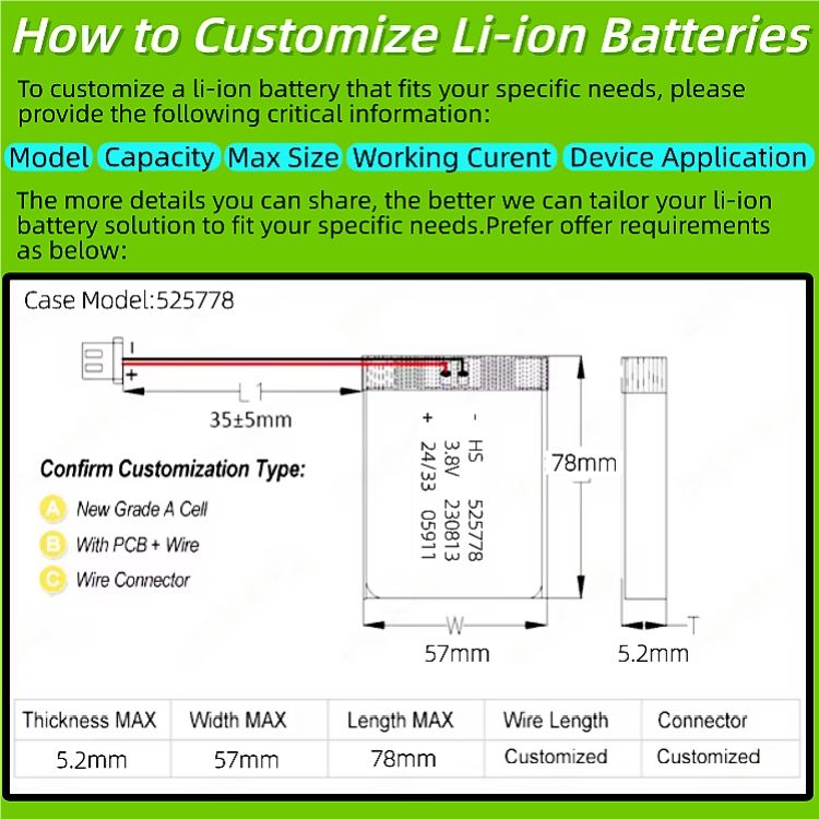 อัตราการคายประจุ:0.5C หรือ ตามสั่งทำ