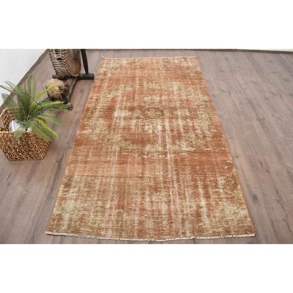 พรมวินเทจขนาด 4.2x7.9 ฟุต พรมตุรกี พรมลายกราฟิกสีน้ำตาลเหลือง