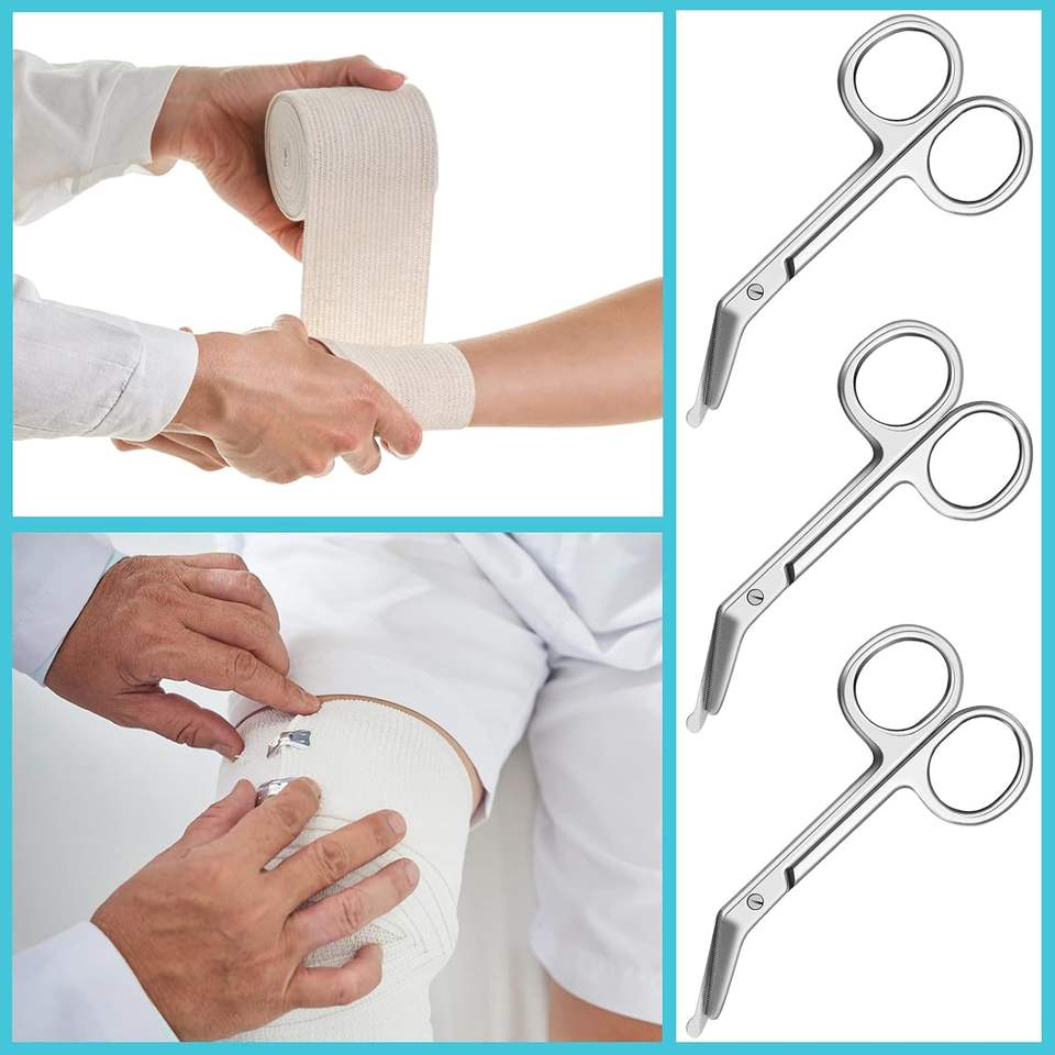กรรไกรผ้าพันแผลสเตนเลสโค้งขนาด4.3x2.1นิ้วเครื่องมือใช้ในบ้านการพยาบาลสัตวแพทย์ใช้ทางการแพทย์ขั้นพื้นฐาน
