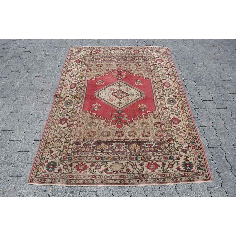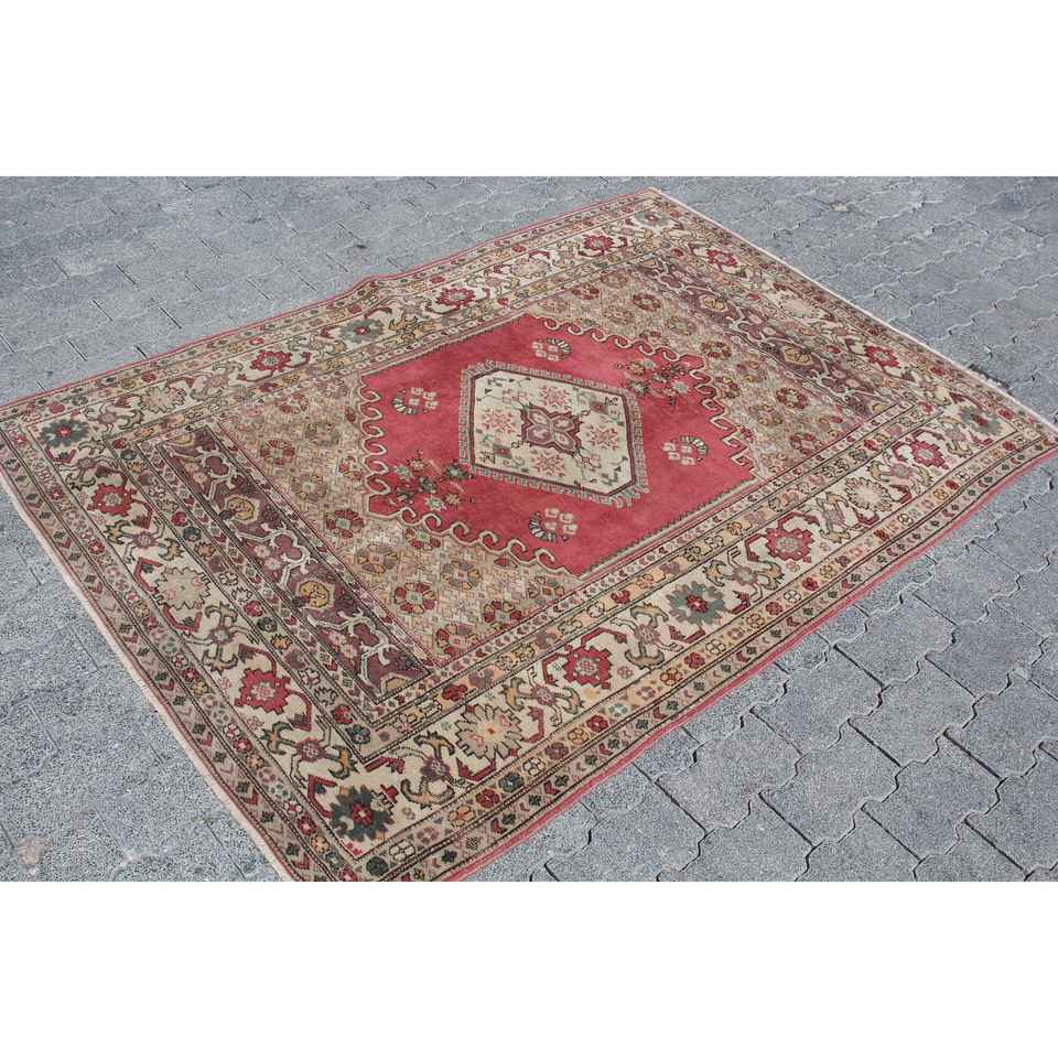 4.3x6 ft Vintage Rug, Rug, Red Patchwork Rug Wool